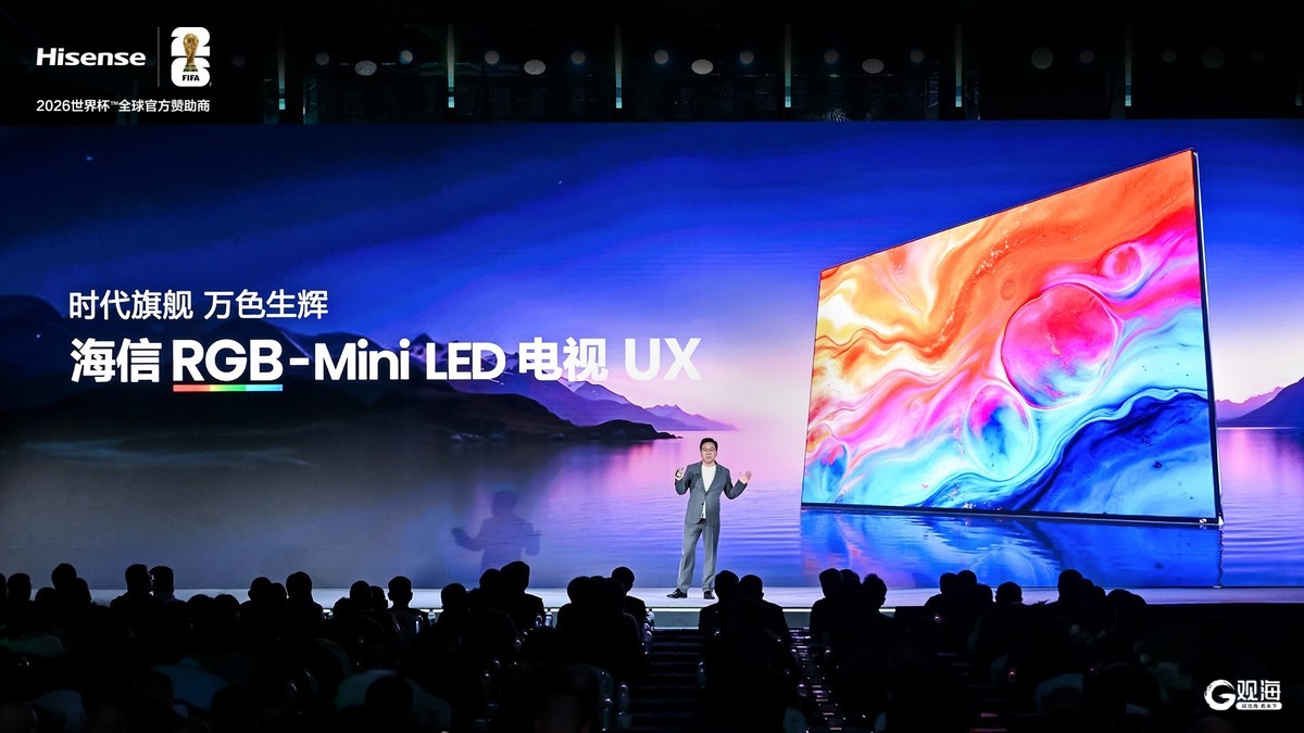 发布会上,海信世界杯定制产品首发阵容全面亮相。作为RGB-Mini LED开创者,海信最新发布的RGB-Mini LED电视时代旗舰UX2026款搭载玲珑4芯真彩背光等7大行业首创技术,攻克串色、色晕、偏色三大行业痛点,可实现至高110% BT.2020色域、10000尼特峰值亮度和134bits超高控色精度,多看1.2亿种极限色彩,精准捕捉赛场球员细微表情与攻防瞬间,刷新全球超旗舰电视画质标杆。同时,海信UX2026款与全球发烧友用户共创,用10大影音顶配设计成为世界杯观赛的首选电视。值得一提的是,UX搭载行业唯一AI全景世界杯,赛前可AI预测胜负,赛中能查询阵容、精准识别场上球员,更可直接开启3场比赛同时看模式,赛后还能生成深度战术总结与复盘,堪称世界杯看球搭子。