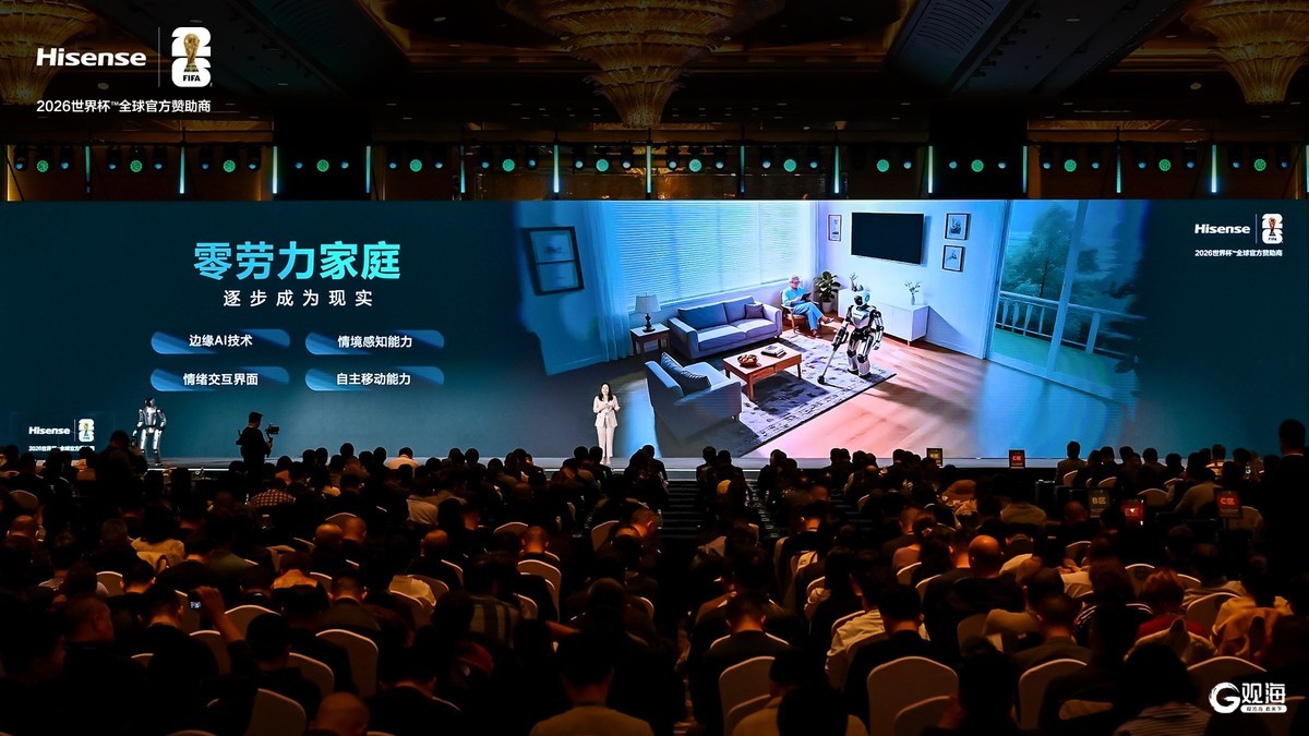 青岛日报社/观海新闻3月6日讯 3月5日,海信世界杯营销暨定制产品发布会在青岛正式举行,现场发布了涵盖电视、空调、冰箱等品类世界杯定制新品与璀璨大力神套系产品,以“AI 科技”为核心贯穿全品类新品与家庭生活场景。同时,海信正式发布世界杯营销四大升级举措,从体验、权益、服务、产品四大维度全面升级,让“有爱,科技也动情”的品牌主张,转化为用户真实、可感知的体验。
