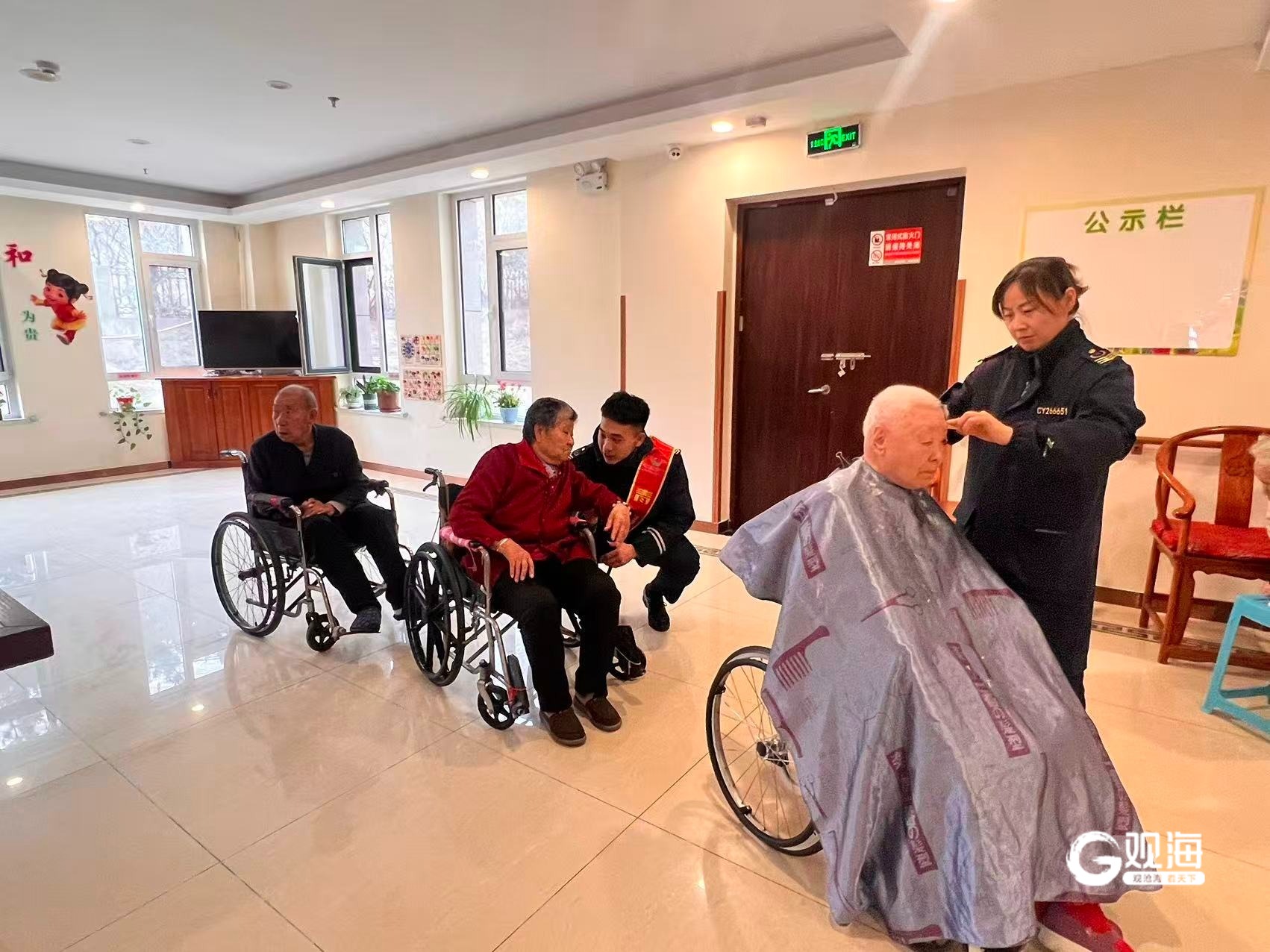 活动当天,志愿者们一到老年公寓,就迅速投入服务。他们结合老人们的实际需求,发挥自身特长,分工协作、有条不紊。有的志愿者支起临时“理发店”,细心为老人修剪头发,剪刀声中夹杂着欢声笑语,原本凌乱的发型变得清爽整洁;有的则当起“眼镜护理师”,用专业设备为老人清洗眼镜,让老人们的“视”界重归明亮清晰。