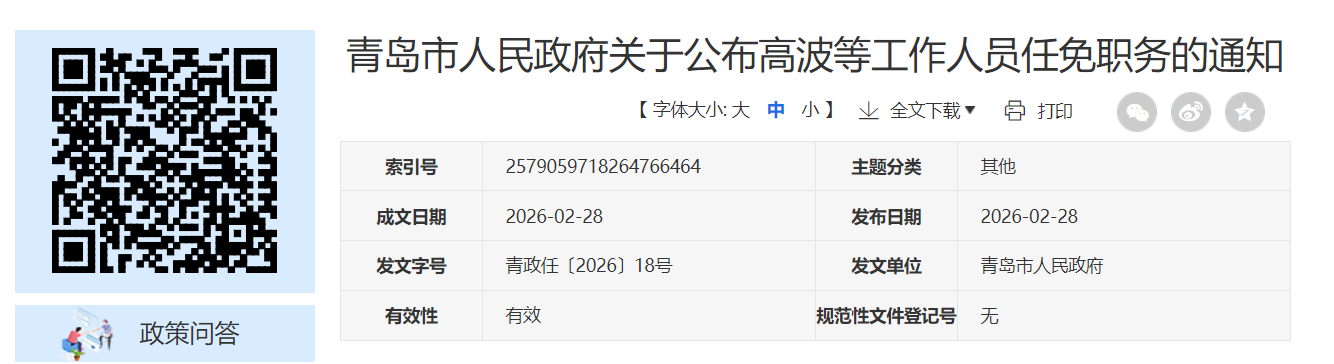现将2026年2月26日市第十七届人大常委会第三十三次会议决定任免人员名单公布如下: