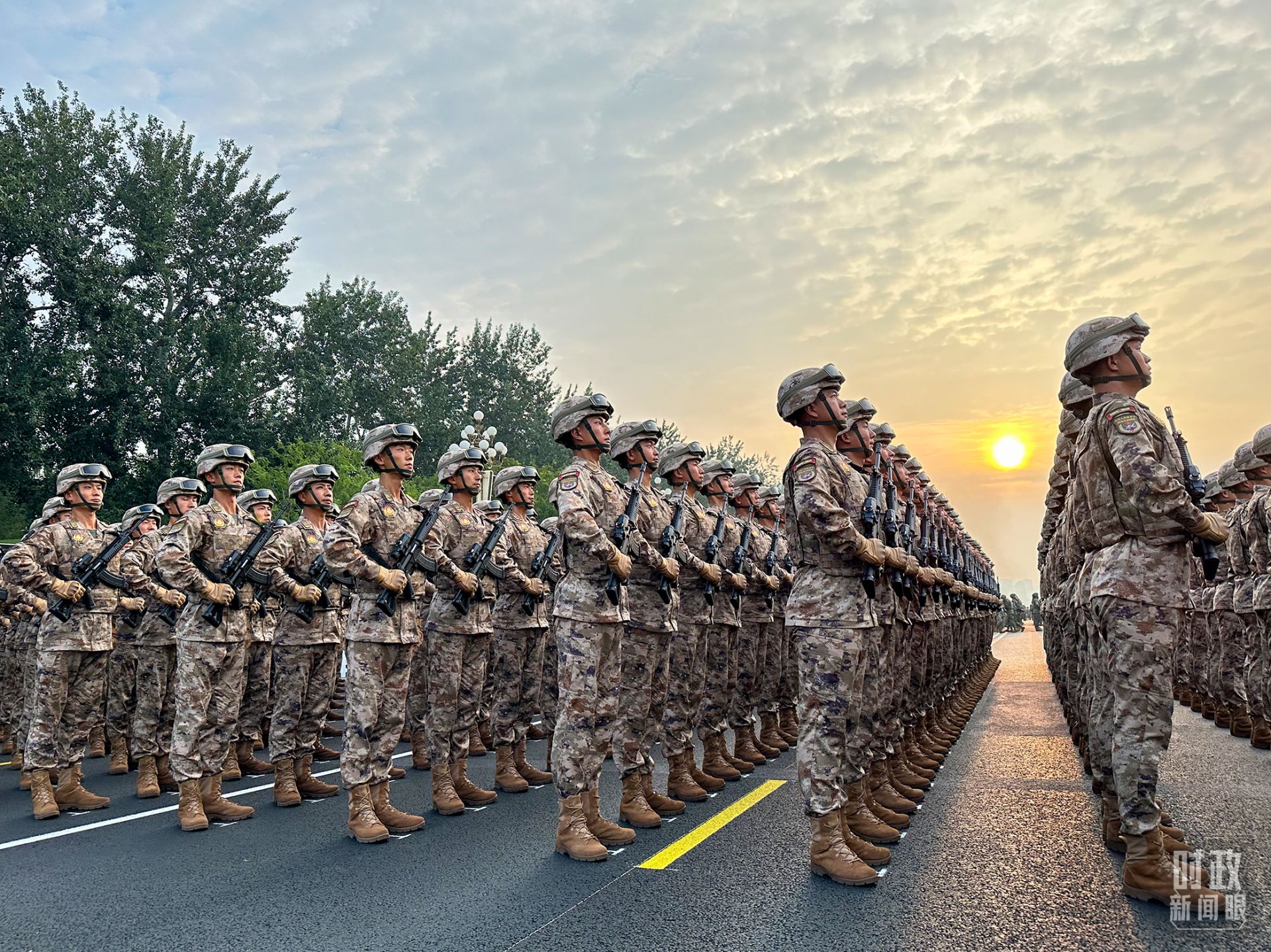 2025年9月3日,受阅部队方队在长安街等候检阅。(总台记者石奇用拍摄)