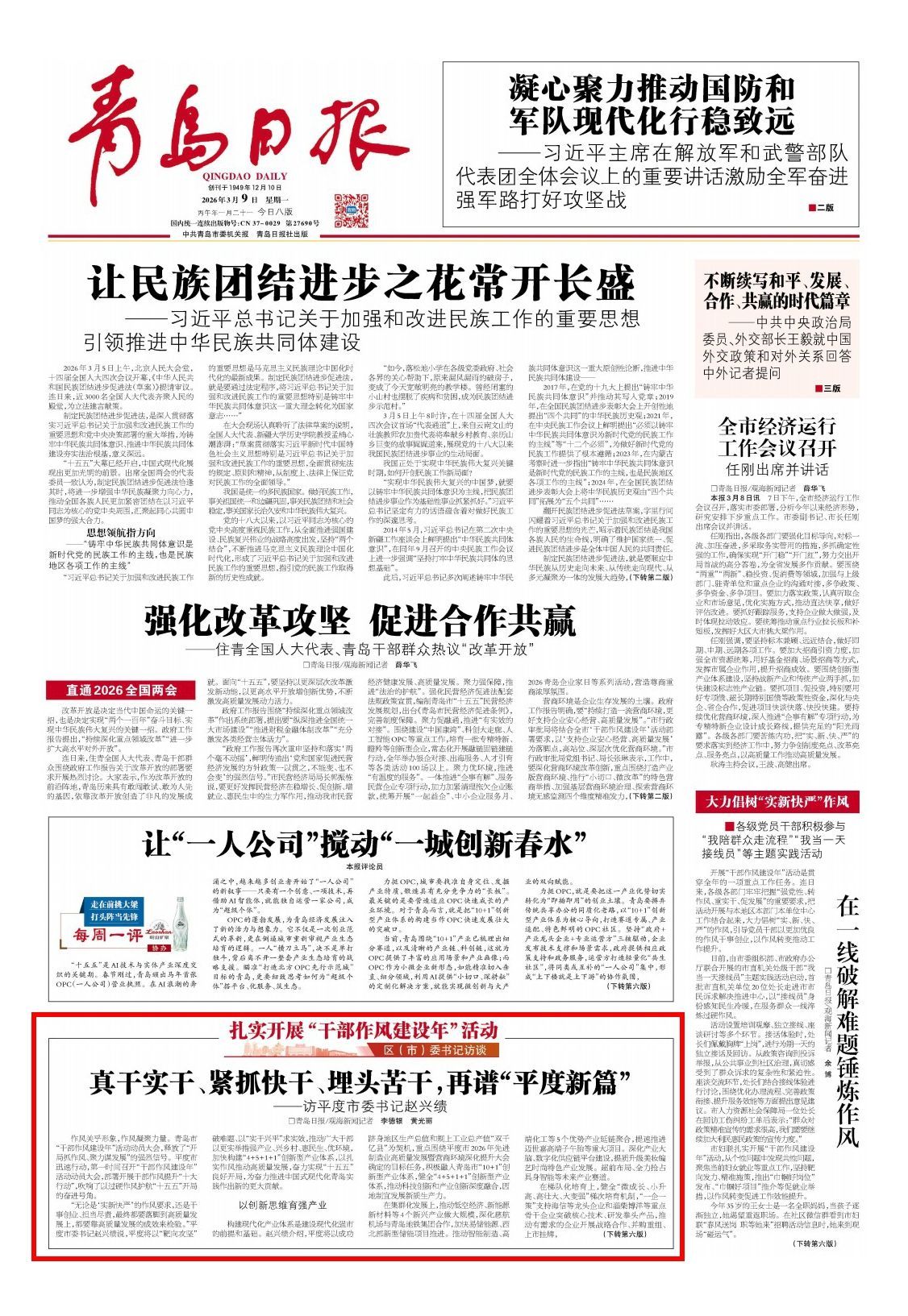 青岛日报2026年3月9日1版