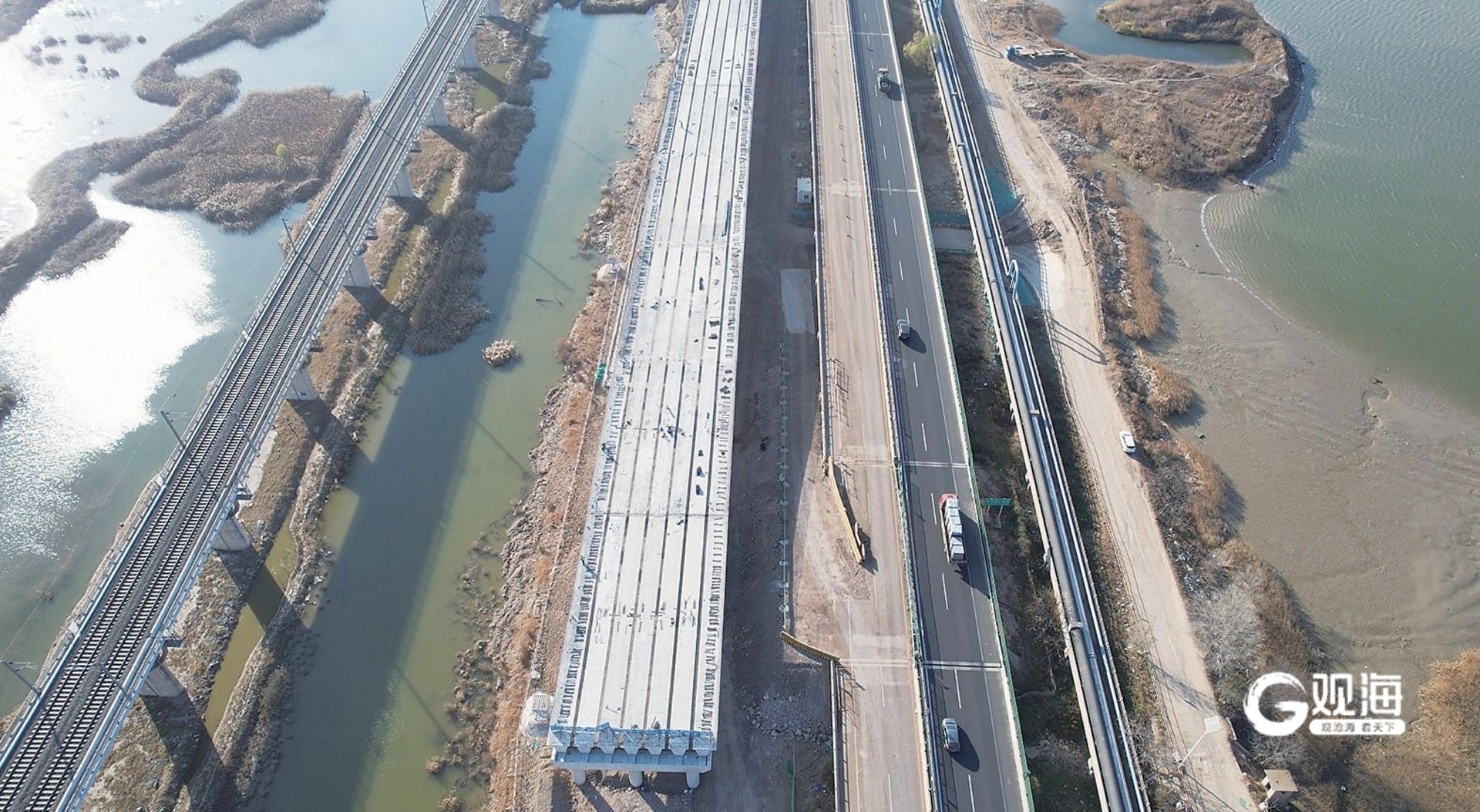 青兰高速河套至黄岛段改扩建工程施工现场。