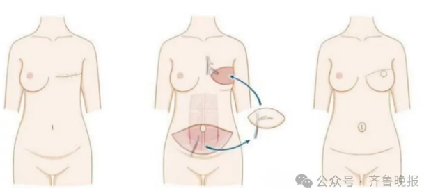 手术中,用于乳房重建的腹壁下动脉穿支皮瓣,并非腹直肌等有用的肌肉,而是患者自体下腹部多余的带有皮肤和血管的脂肪组织。将其移植到胸部,能重建血供并且成活。由于效果逼真,此项手术被誉为乳腺重建领域的“天花板”。