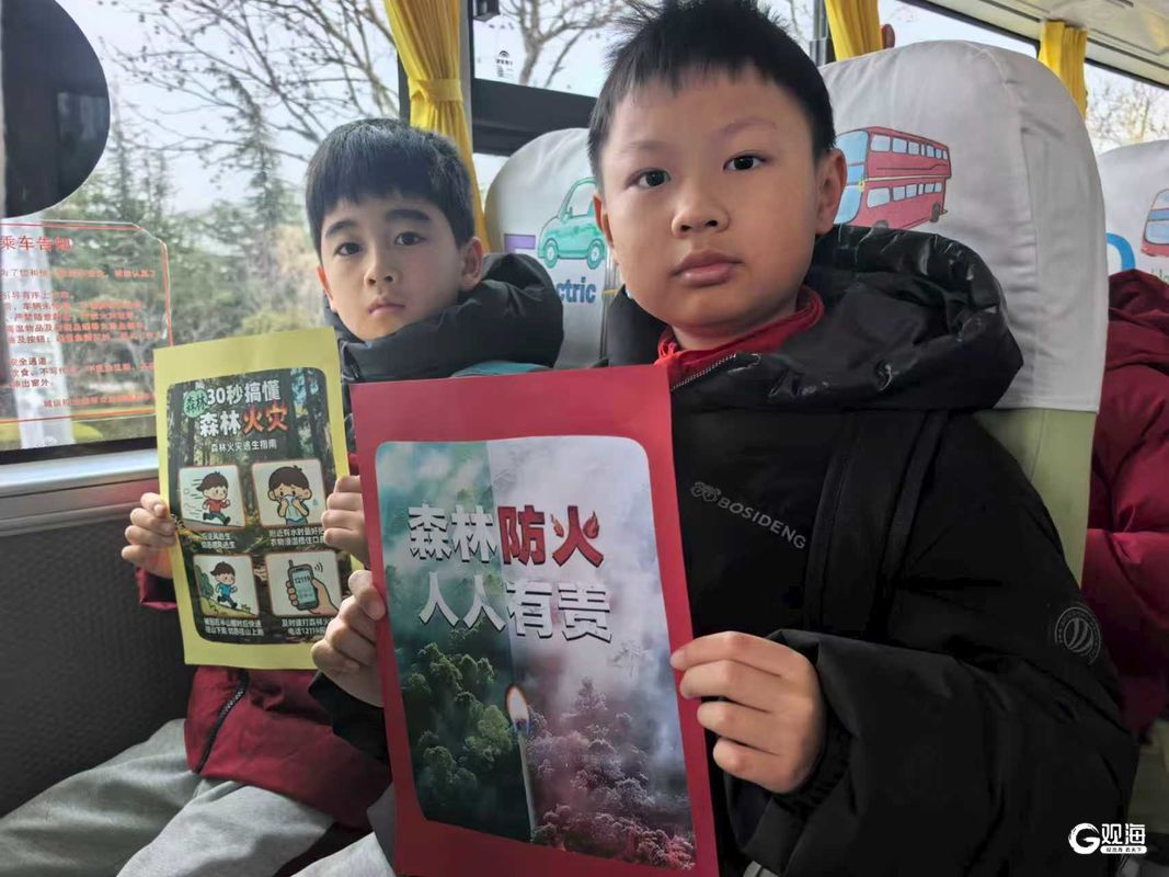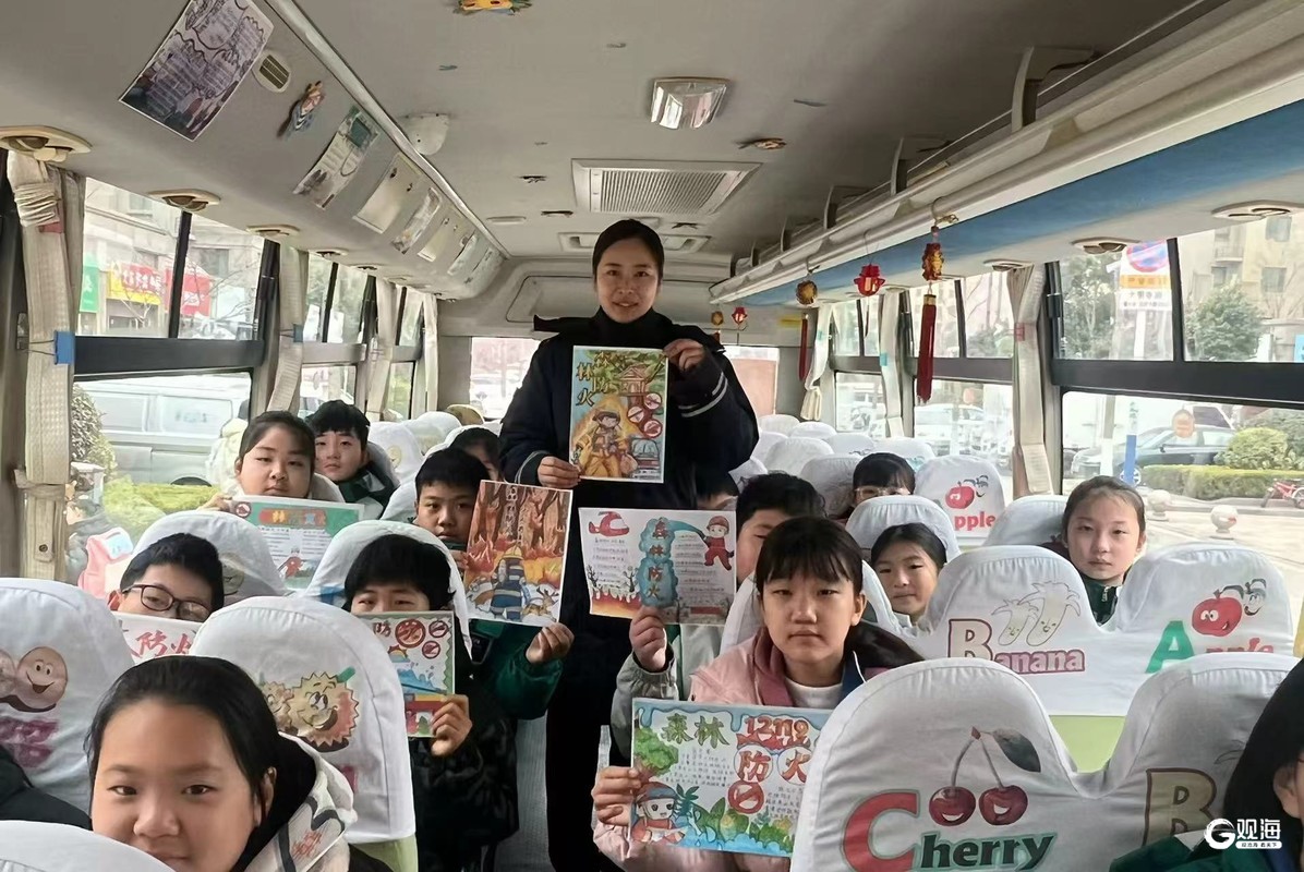随着校车缓缓启动,车厢内的“流动课堂”也拉开了序幕。孩子们聚精会神地观看《森林防火 人人有责》动画短片。当袁苗珈指着海报提问时,孩子们争先恐后地回答:“要劝阻!”“打12119!”稚嫩而坚定的声音在车厢内回荡。她顺势鼓励大家成为“小小防火宣传员”,将安全知识带回每一个家庭。