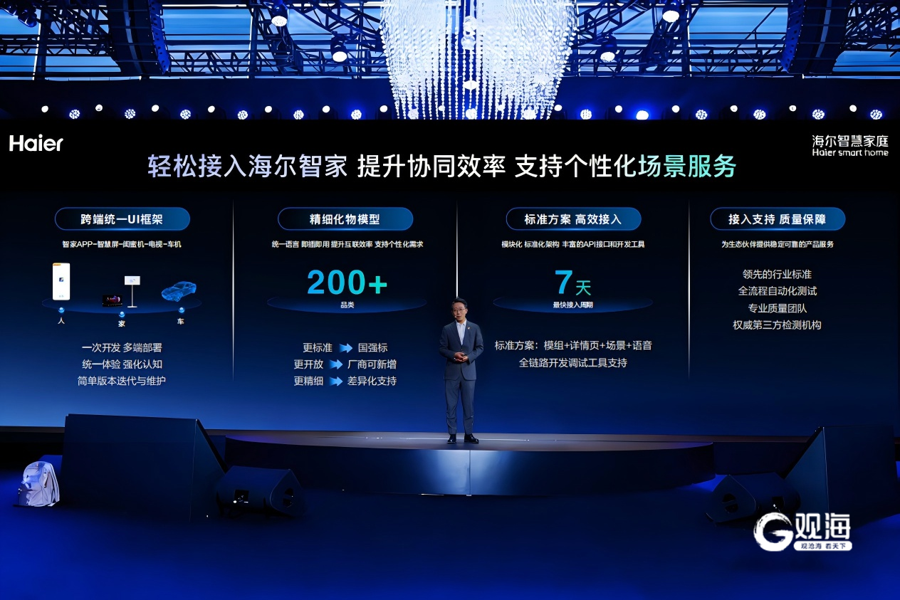 一是发布智慧家庭生态架构、开放生态战略及跨界创新合作成果,具身智能实力引领行业。海尔智慧家庭研究院副院长牛博现场表示,家是另一种形态的具身智能,并展示了“一脑多空间”智慧家庭架构和场景方案;现场同时发布了智慧家庭开放生态,合作伙伴通过标准化方案,可以“一次开发多端部署”,200+精细化物模型,7天最快接入周期。海尔通过统一技术架构提供底层支持、质量保障能力。像小度智能眼镜等已全面接入海尔智慧家庭体系,打造全新的智慧家庭无感化交互入口。