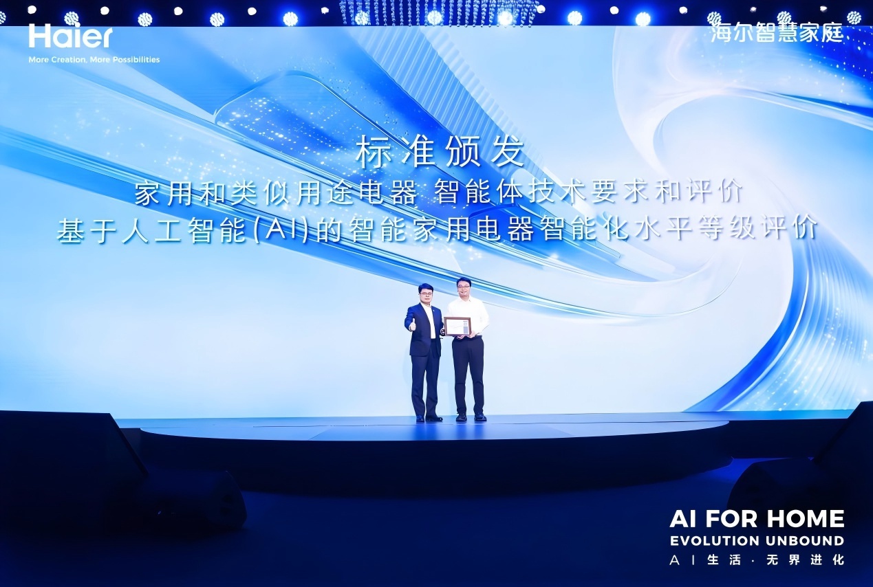 三是海尔智慧家庭联合家研院,主导发布“智能体标准”“智能家电产品智能水平标准”,科技创新实力不断提升。其中,行业首个 《基于人工智能(AI)的智能家用电器智能化水平等级评价》为空间智能全面落地筑牢技术根基;《家用和类似用途电器 智能体技术要求和评价》,则让每一项创新都转化为可感知、可确定的用户价值。此外,海尔主导的《家庭大脑白皮书(2026)》也正式发布,深度定义未来十年智慧生活的技术底座与商业版图。