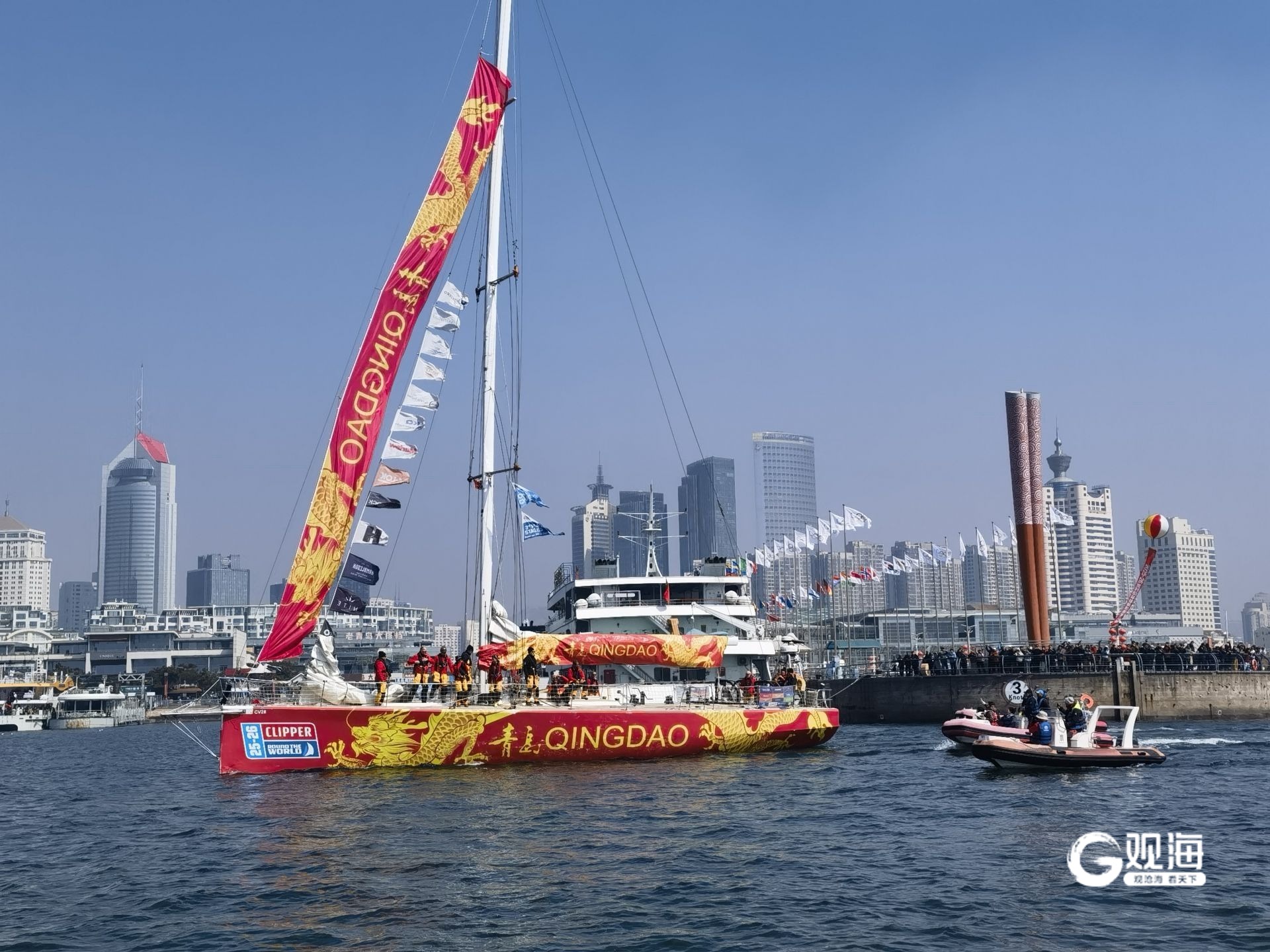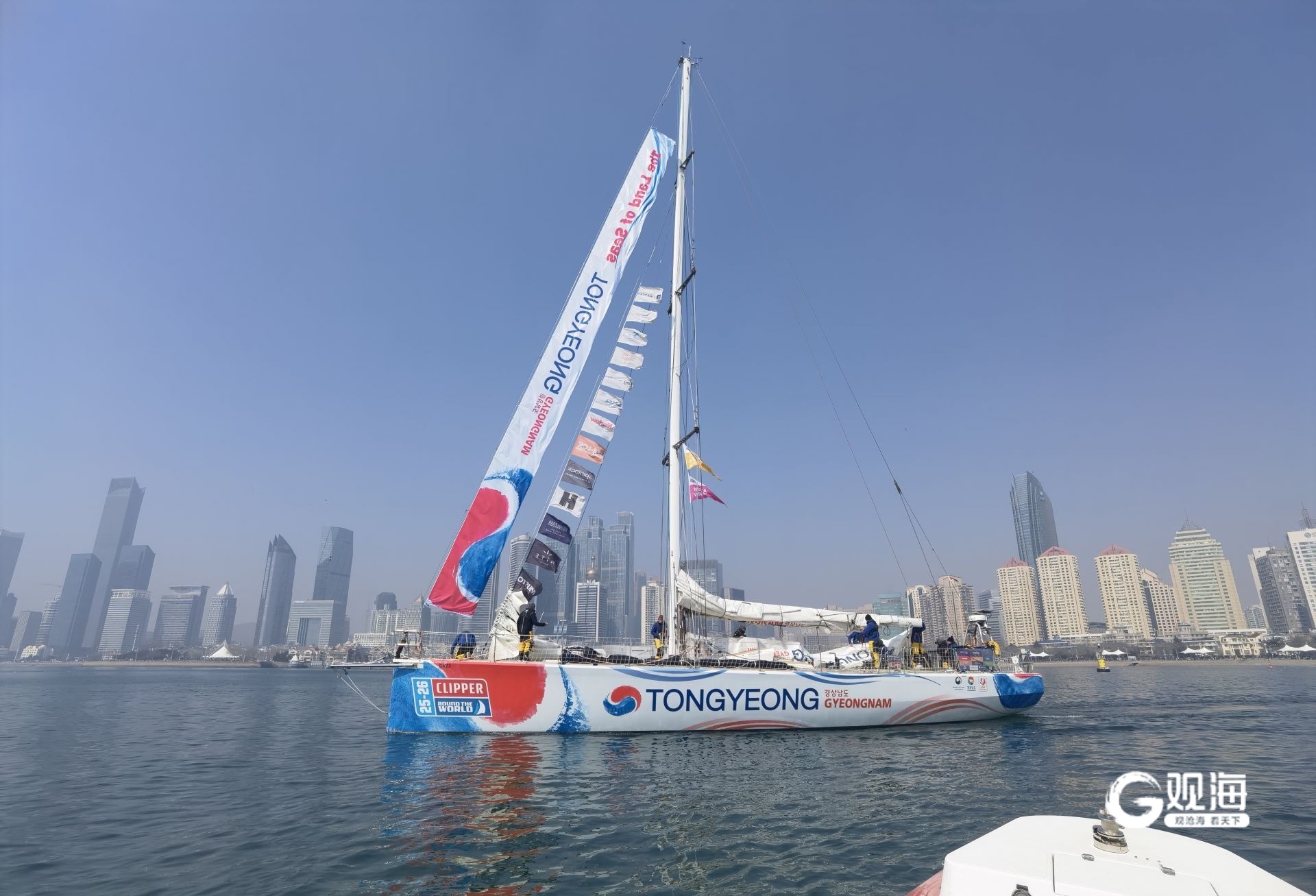 上午11:30,在欢庆的锣鼓和市民的祝福声中,10支赛船依次驶出港池,驶向下一赛段目的地韩国统营。这是“青岛号”第十次从母港扬帆远航。