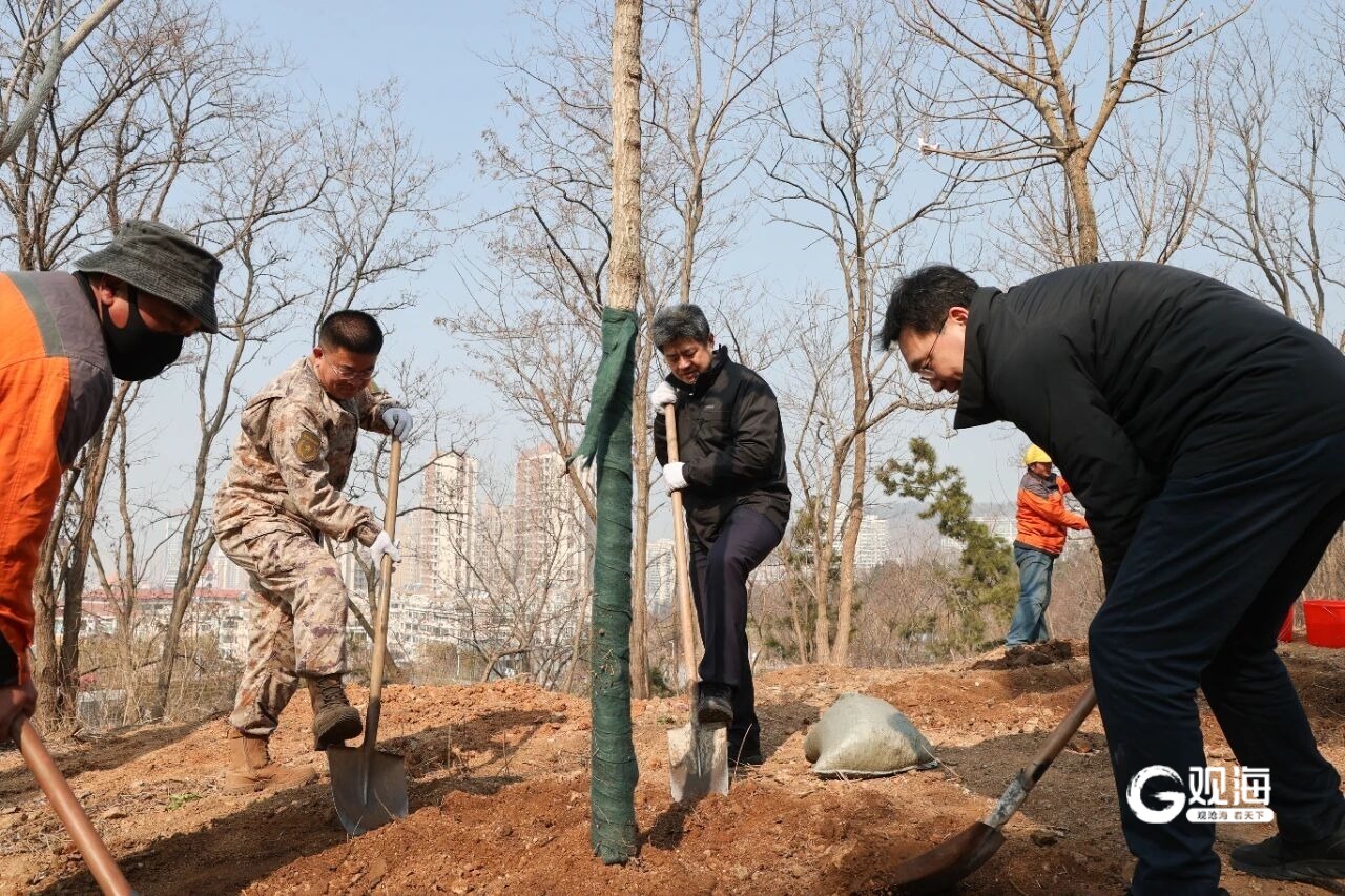 与此同时,市南区深化“互联网+义务植树”模式,强化区街联动,在辛家庄北山、观象山公园西侧区域,分别开展政府组织、社会参与的系列义务植树活动。活动现场,参与人员分工协作、挥锹植绿,技术人员现场指导栽植技巧,养护人员手把手示范,确保栽植规范。