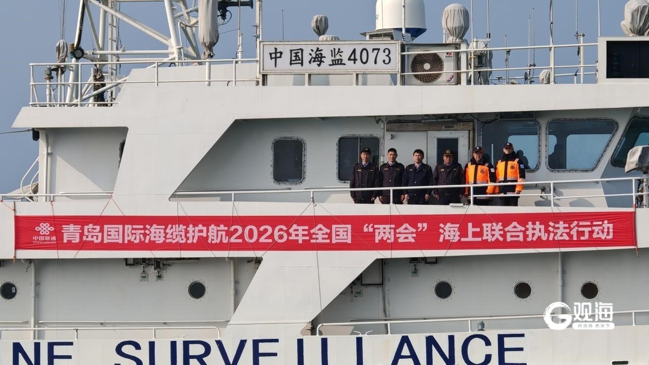 青岛日报社/观海新闻3月13日讯 近日,青岛市海洋与渔业行政执法支队联合中国联通青岛市分公司,共同开展“护航2026年全国两会期间国际海缆专项行动”的专项巡护任务。行动组乘坐中国海监4073船,进行了为期9天的海底光缆立体巡护与普法宣传活动,为两会期间通信安全与海域稳定提供了坚实保障。