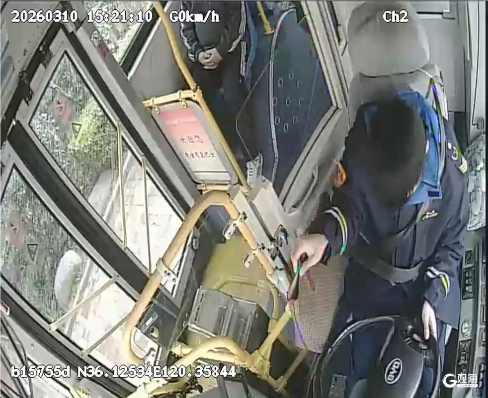 监控画面清晰显示,张女士下车后,挎包遗落在座位上,不久后被一位热心乘客发现,该乘客将挎包交到了驾驶员张健颖手中。张健颖接到乘客转交的挎包后,立刻将其妥善放置在驾驶舱安全位置保管。看到监控中挎包安全无恙,张女士悬着的心终于落了地。
