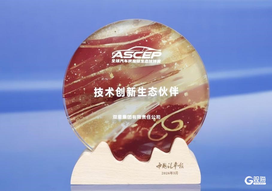 此次荣获“全球汽车供应链技术创新生态伙伴奖”,是双星在全球汽车供应链中价值持续提升的重要里程碑。双星表示,将继续以技术创新推动供应链体系优化升级,深化与产业链伙伴的协同共创,为构建安全、绿色、智能的全球汽车供应链生态贡献双星力量。(青岛日报/观海新闻记者 孙欣)