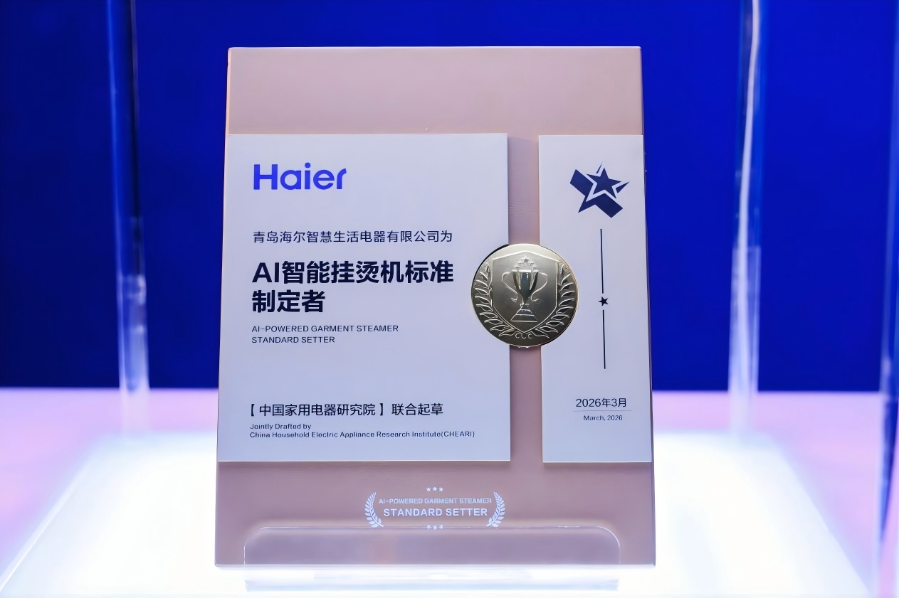 青岛日报社/观海新闻3月13日讯 13日,上海新国际博览中心,在2026年中国家电及消费电子博览会(AWE)上,海尔小家电举办了“AI智蕴,重写家生活”AI智能挂烫机标准制定发布会。会上,海尔小家电联合中国家电研究院共同发布了AI智能挂烫机标准,并分享了在AI时代如何通过底层技术创新,重塑用户生活的智能交互体验。