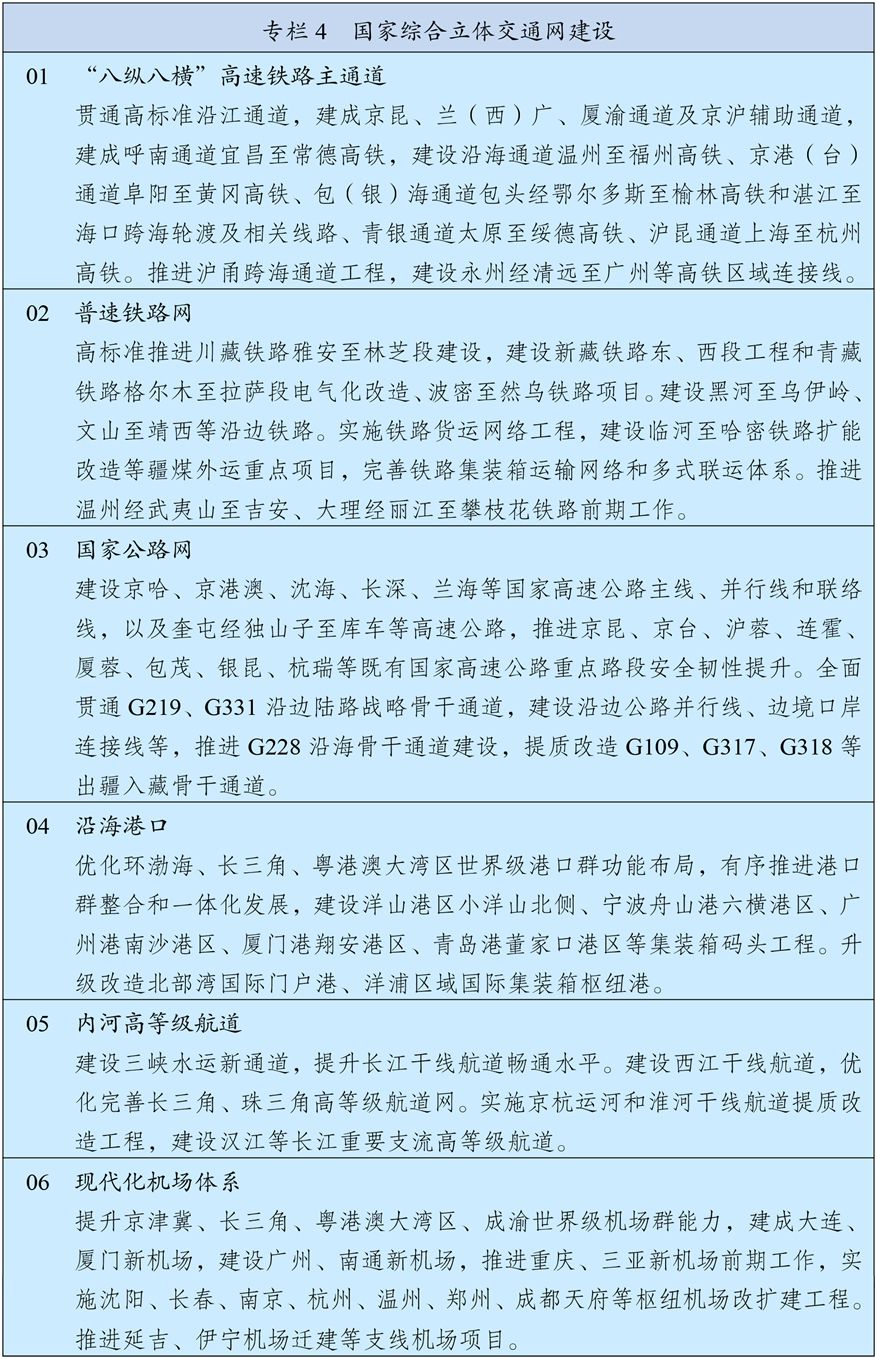 围绕实施国家发展规划,健全政策协调和工作协同机制。将国家发展规划作为宏观政策取向一致性评估的重要依据,确保各类政策发力方向符合国家发展规划要求。强化中期财政规划和年度预算安排对规划实施的财力保障,中央财政资金优先投向规划确定的重大战略任务、重大政策举措和重大工程项目。金融政策要积极支持规划确定的重点发展领域。坚持项目跟着规划走、资金和要素跟着项目走、监管跟着项目和资金走,加快规划确定的重大工程项目审批核准,优先保障规划选址、用地用海和资金需求,单体重大工程项目用地等要素需求由国家统一保障。加强对重大工程项目的伴随式穿透式监管和全过程全周期安全管理。