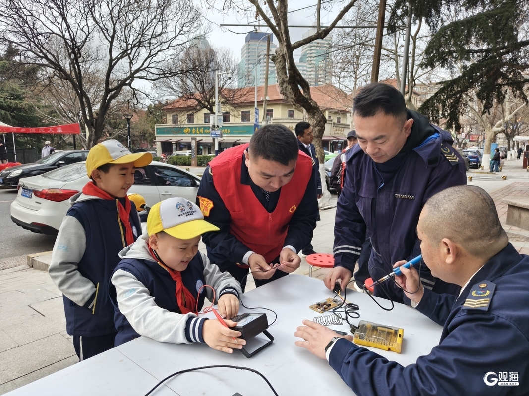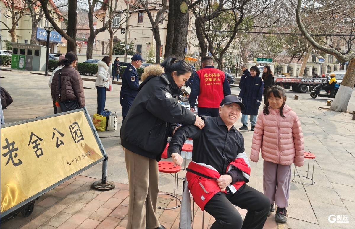 活动中,市南实验小学海燕二班的小小志愿者们也积极参与,主动协助引导秩序、发放宣传资料、陪伴老人等候服务,用童真与热情为公益活动增添一抹亮色。