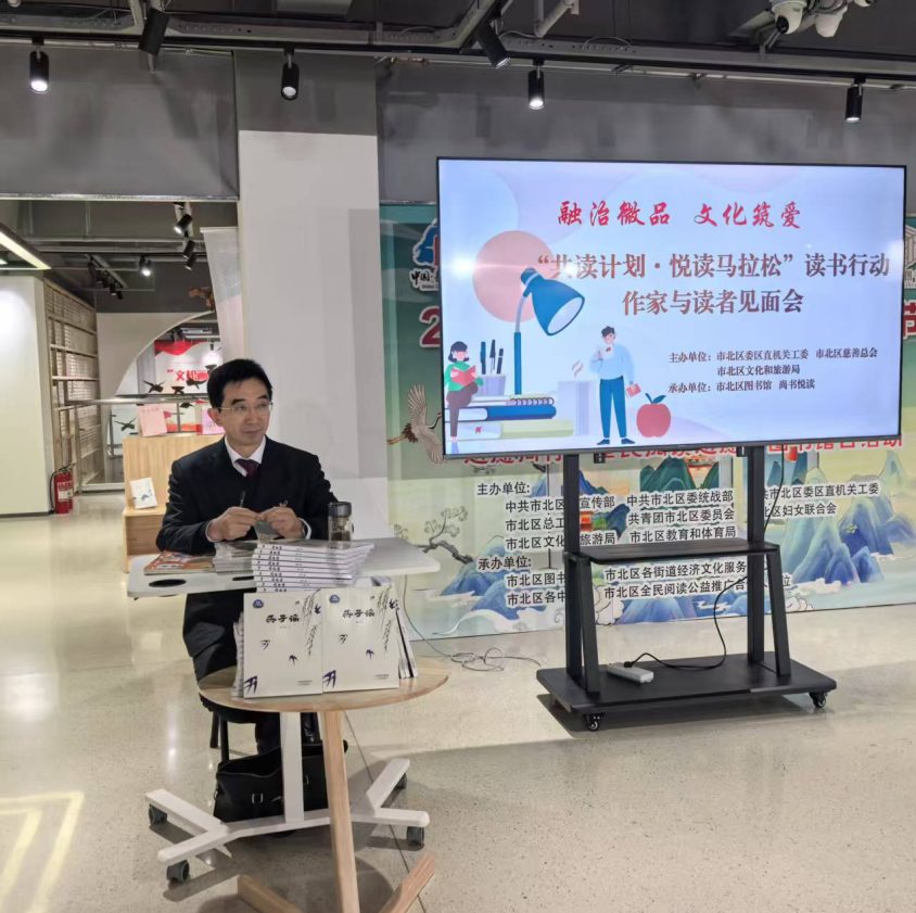 以《全民阅读促进条例》施行为契机,严格落实教育部办公厅、中央宣传部办公厅《关于深入实施全国青少年学生读书行动的通知》的要求,市北区于2025年9月正式启动“共读计划·悦读马拉松”读书行动。项目紧扣“书香市北”文化建设主线,创新打造立体化阅读生态,为全区广大读者及家庭搭建系统化、常态化共读平台,推动全民阅读走深走细、落地见效,营造“爱读书、读好书、善读书”的浓厚社会氛围。期间,邀请课本作家、冰心儿童文学奖获得者鲁冰老师走进市北区图书馆和学校,为市北区广大读者带来了6场充满温度与启迪的文学之旅。邀请嘉宾为学生和家长分享“明世德堂本《西游记》沉浮史”,引导读者与经典对话并深度阅读。