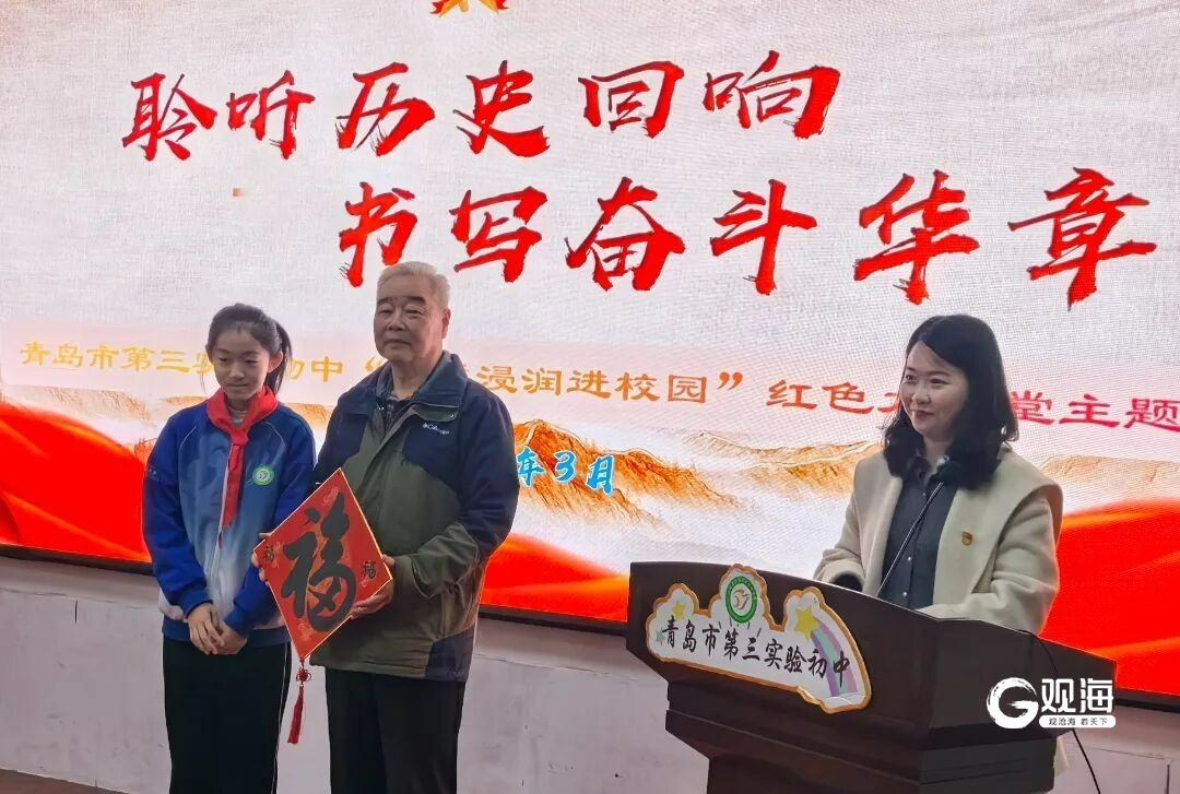 军休干部志愿宣讲团成员高华成、堵继学分别走进青岛市第三实验初中、青岛市莱芜一路小学,开展红色志愿宣讲。两位军休干部结合自身军旅经历,分别以长征精神、雷锋精神为核心内容,深情讲述革命故事、传承优良传统,引导同学们铭记历史、心怀家国,从小树立爱国情怀和奉献精神,让红色基因代代相传。