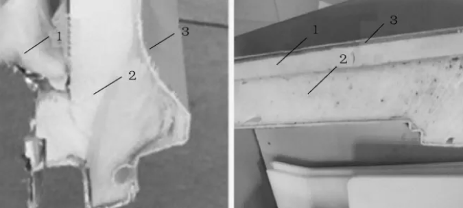冰箱门体 1—真空绝热板;2—门体发泡层;3—门体外壳