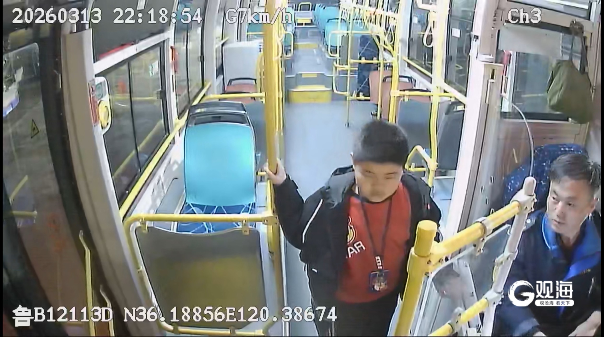车载监控及场站监控完整还原了全过程。3月13日22时18分许,李明浩驾驶302路DD1618号车抵达终点站后,一个小男孩神色慌张地从车厢后排跑向他,一脸急切求助:“叔叔,我怎么办啊!”李明浩立即停下手中工作,轻声安抚男孩情绪,并询问男孩情况。