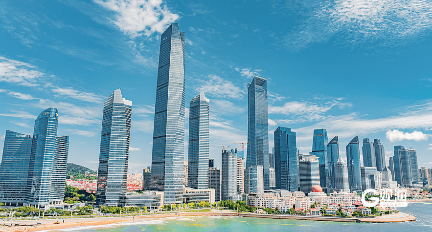 浮山湾畔,海天中心、中铁青岛中心、海航万邦中心等商务楼宇业态加速迭代焕新。