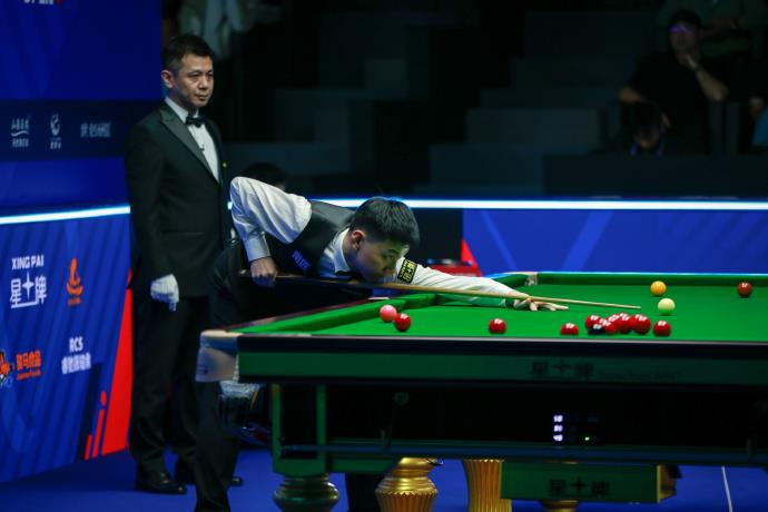 本场比赛两人手感火热、交替取胜。赵心童轰出个人本赛季第65杆破百,以4-3率先取得赛点。随后龙泽煌打出单杆76分,将比赛拖入决胜局。决胜局中赵心童轰出129分破百获胜。