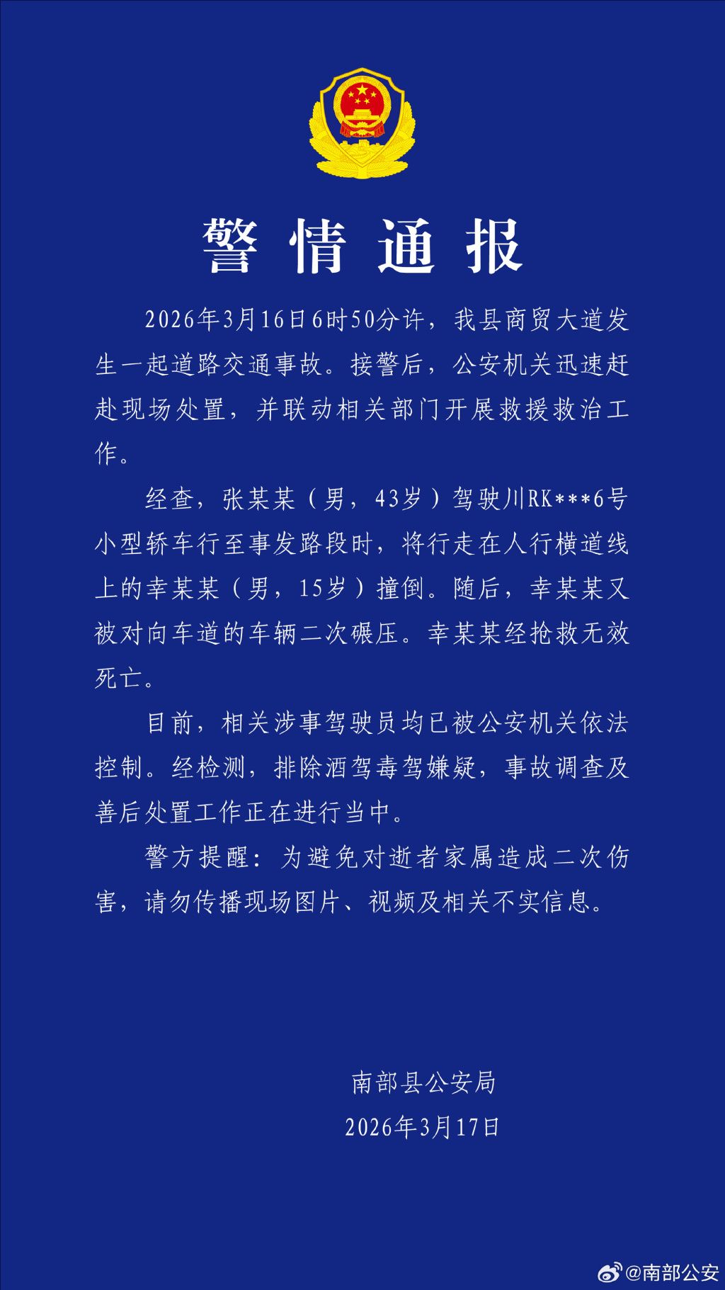 警方通报“15岁男生过斑马线被撞身亡”:两名驾驶员均已被控制