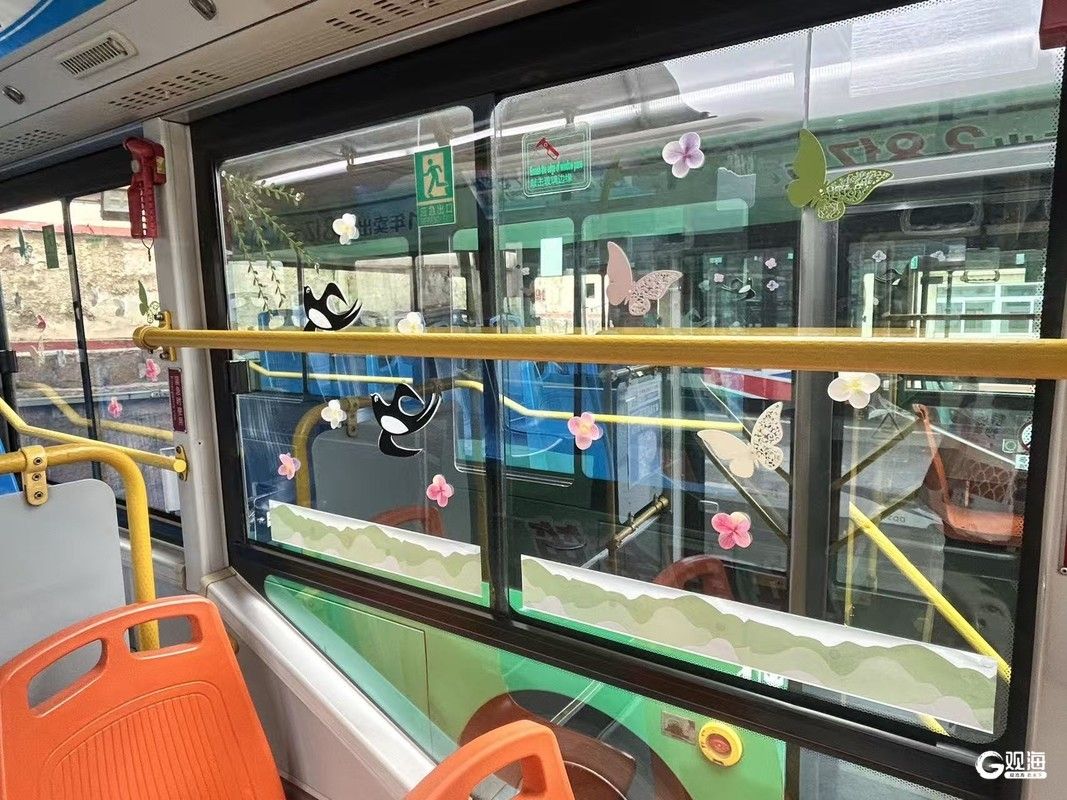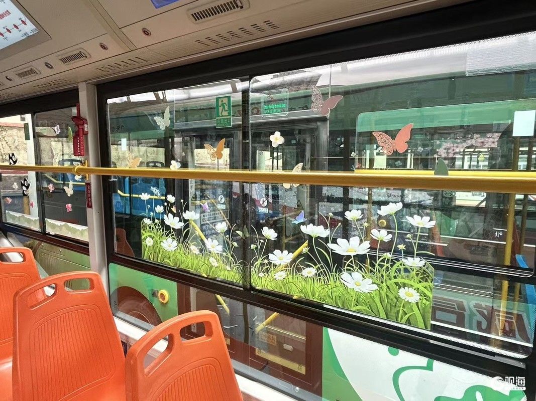 “平时坐车都是匆匆赶路,今天一上车就被这满车厢的春天吸引了,看着桃花、燕子的贴纸,感觉心情都变好了”。一位乘客上车后忍不住赞叹道。