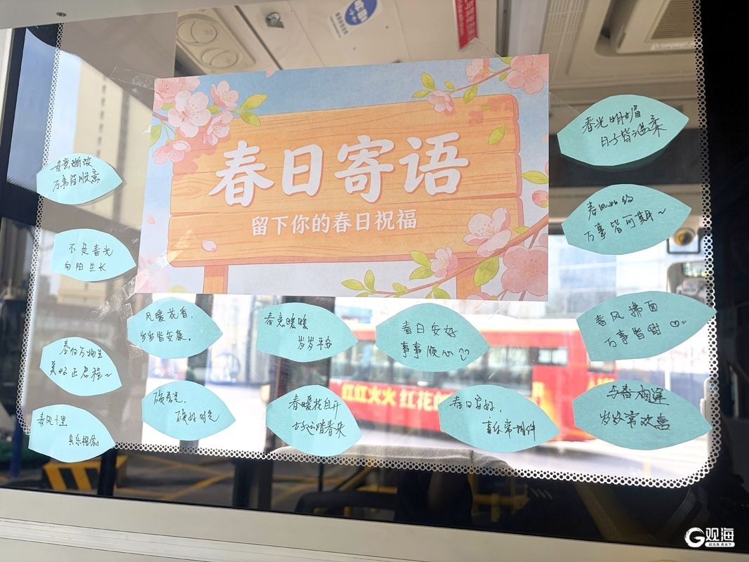 最引人注目的,莫过于驾驶室后方特设的“春日寄语”留言板。设计成各式树叶形状的便签纸,静静等待着乘客们写下对春天的期许。不一会儿,“考研上岸,不负春光”“父母安康,岁月静好”……一张张写满美好愿景的便签,将留言板装点成一棵枝繁叶茂的“心愿树”,汇聚成春日里最温暖的风景。
