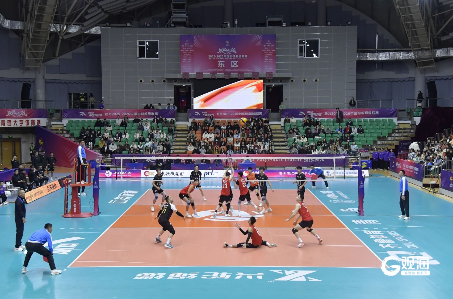 按照联赛赛制,半决赛青岛队迎战保定队,以两回合主客场制产生一个决赛资格。在今天双方首场比赛中,坐镇主场的青岛男排在首局就进入状态,25:17抢得先机。第二局,双方比分紧咬,在17:20落后情况下,凭借拦网、强攻、防守反击连追三分,将比分追至20平。关键时刻,保定加强发球攻击性,连续得分并以25:21扳回一城。