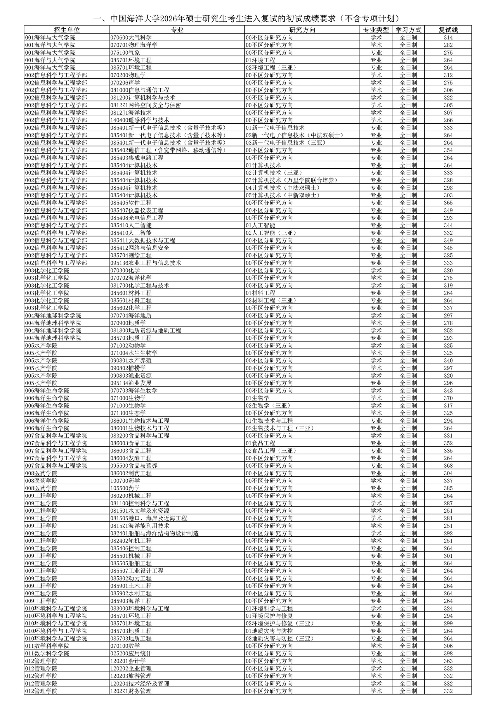 中国海洋大学2026年考研复试分数线发布 2026-03-20 12:37 青岛日报社/观海新闻 0 青岛日报社/观海新闻3月20日讯 20日,中国海洋大学正式发布2026年硕士研究生招生考试复试分数线,共涉及33个学院(中心)的相关专业。 (青岛日报/观海新闻记者 杨琪琪) 责任编辑:王亚楠 (作者:杨琪琪)