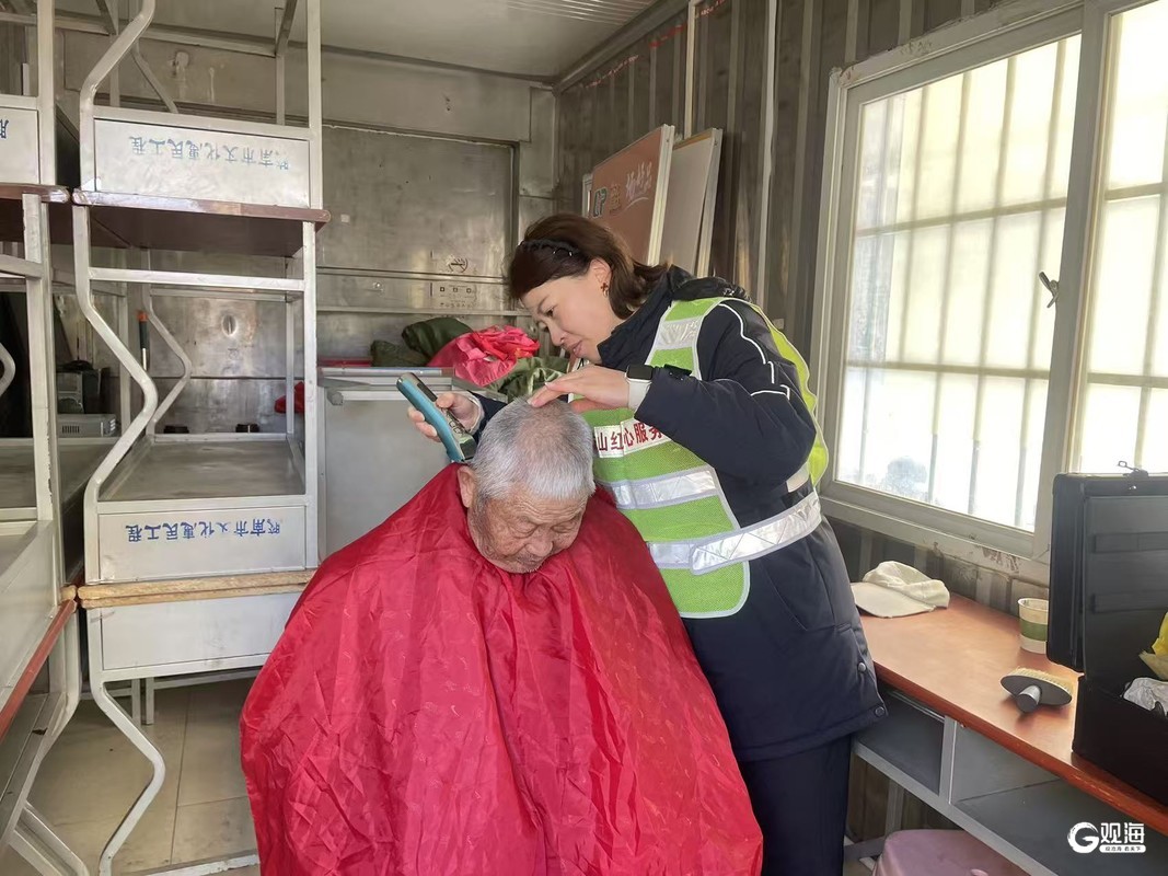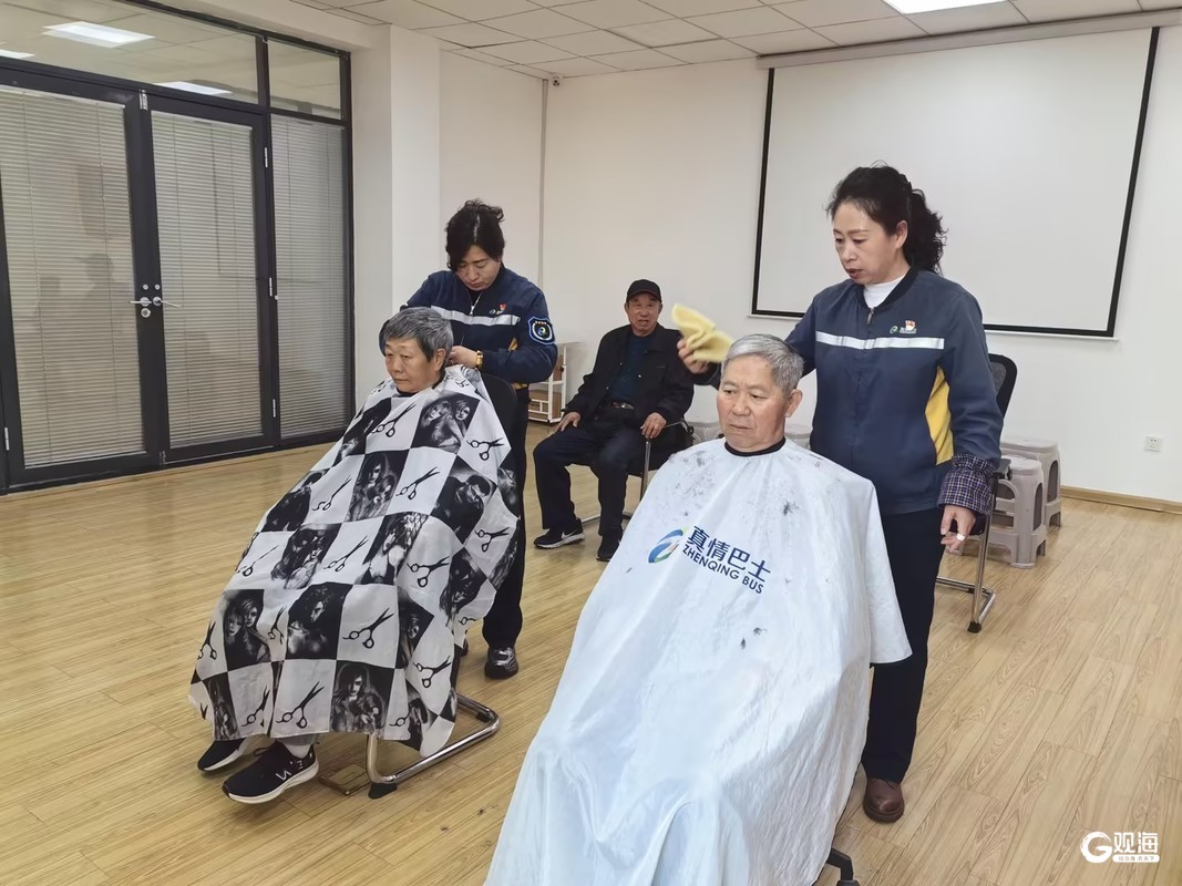 70多岁的张大爷是第一个前来理发的居民,王金军熟练地帮他系上围布,拿起电动理发器开始修剪头发。随着“嗡嗡”的轻响,细碎的头发缓缓落下,原本有些凌乱的发型渐渐变得整齐利落。一旁的王大娘见状,也忍不住上前说道:“也给我剪短点吧,讨个好彩头!”“行,大姨你瞧好吧!”张红娥笑着回复道。她拿着银色打薄剪刀,细细修整边角和杂乱发丝。二十分钟后,王大娘原本略显凌乱的头发变得清爽整齐,看着新理的发型,王大娘的脸上瞬间笑开了花,连连夸赞驾驶员们手艺细致、服务贴心。