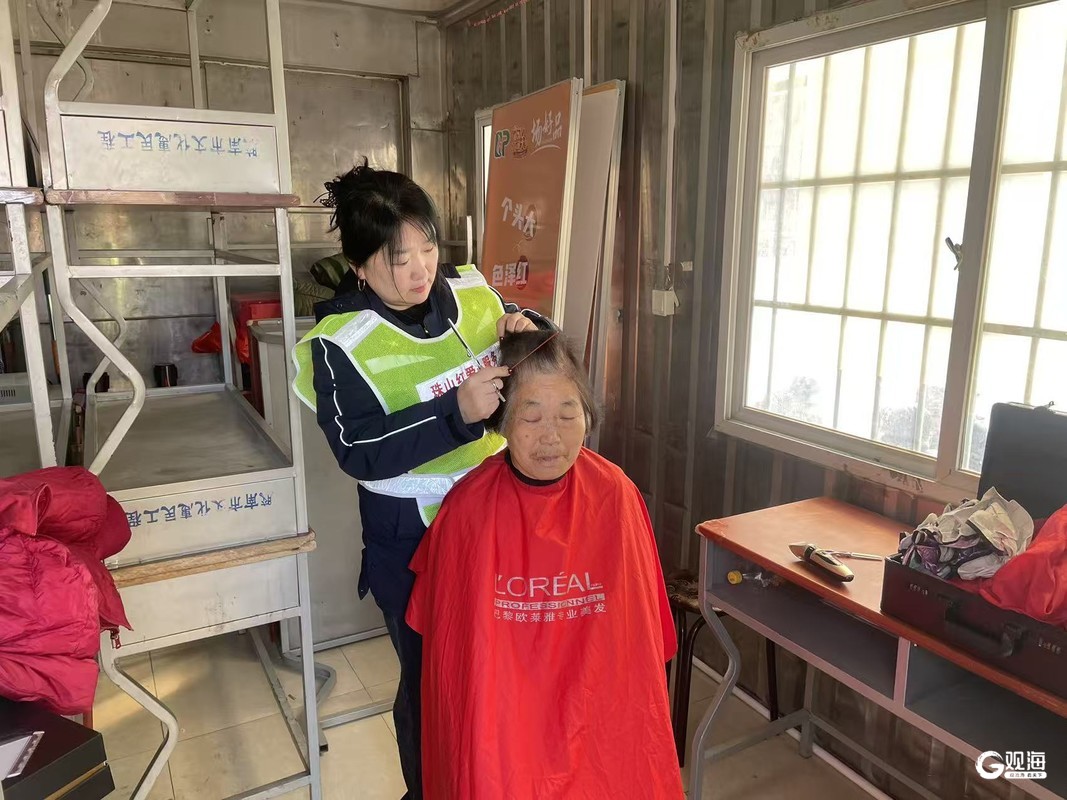 在大家的巧手下,不一会儿,一位位老人都容光焕发,脸上洋溢着幸福的笑意。