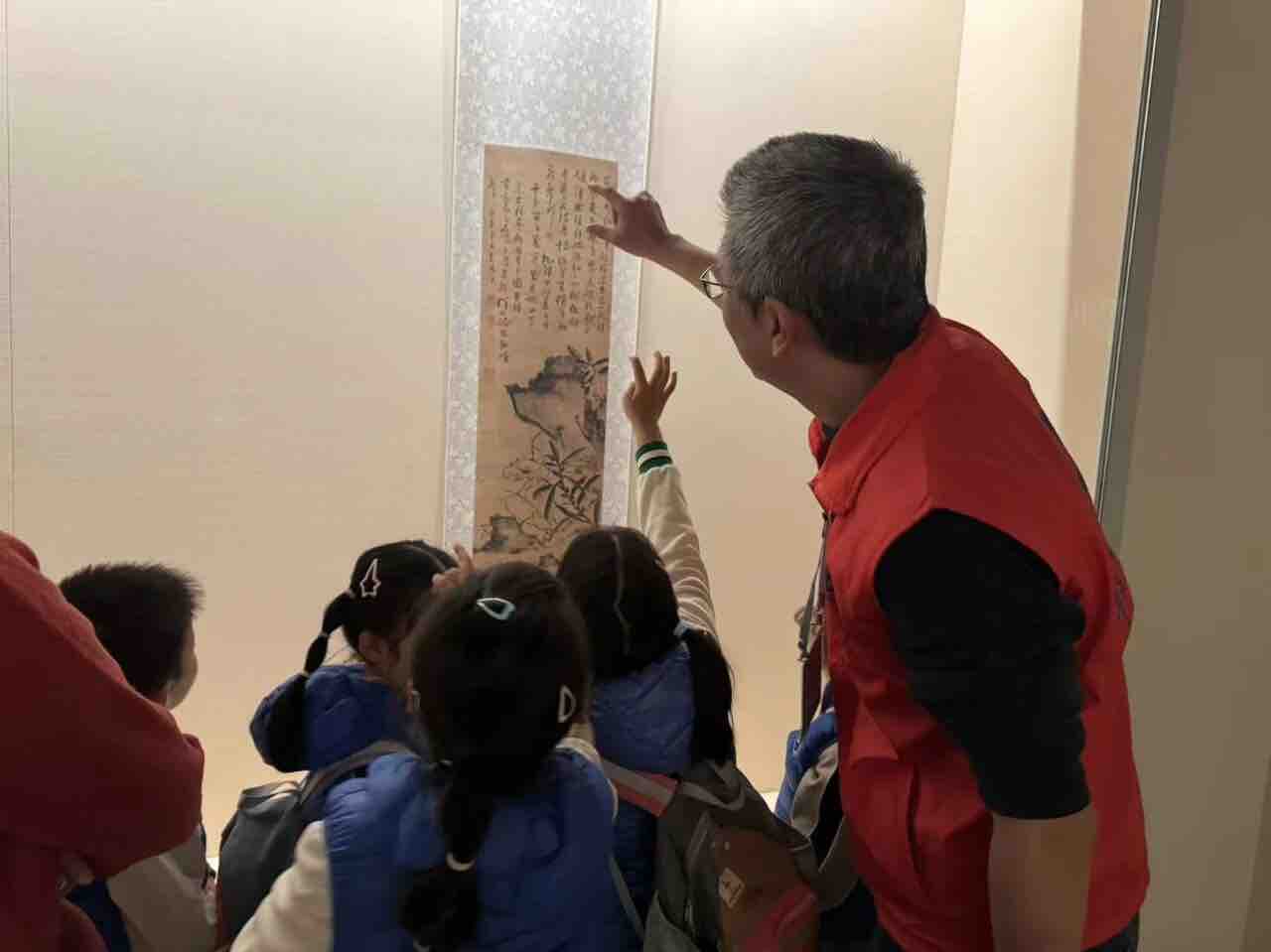 在非遗纪录片放映区,孩子们安静观影,初步了解非物质文化遗产的传承价值;在舞龙石刻前,大家认真观察石刻上的舞龙纹样,聆听龙抬头与舞龙文化的渊源,并开展“龙石同框”合影留念。在木版年画展厅,孩子们仔细寻找画中的龙纹、马纹元素,了解年画制作工艺与吉祥寓意;在高凤翰书画厅,通过赏析经典画作,感受传统文化中刚健中正的精神内涵。在瓷器陈列馆与古代工艺陈列馆,孩子们借助显微镜观察瓷器细节、搜寻龙马纹饰、体验AI创意屏创作、观看文物制作视频,在探索中惊叹古代工匠的精湛技艺,感受中华历史文明的博大精深。