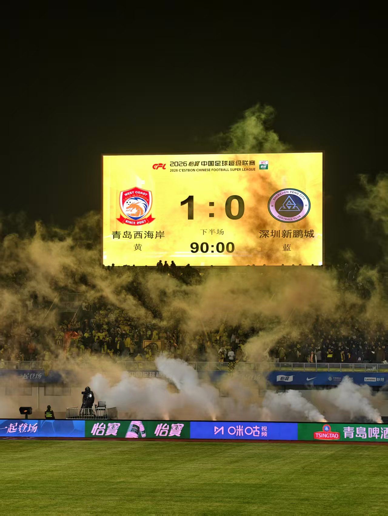 青岛日报社/观海新闻3月21日讯 今晚,在中超联赛第三轮的一场比赛中,青岛西海岸队在西海岸大学城体育场迎来了新赛季主场首秀。凭借戴维森第82分钟的进球,西海岸队1:0战胜深圳新鹏城队,取得赛季首胜。