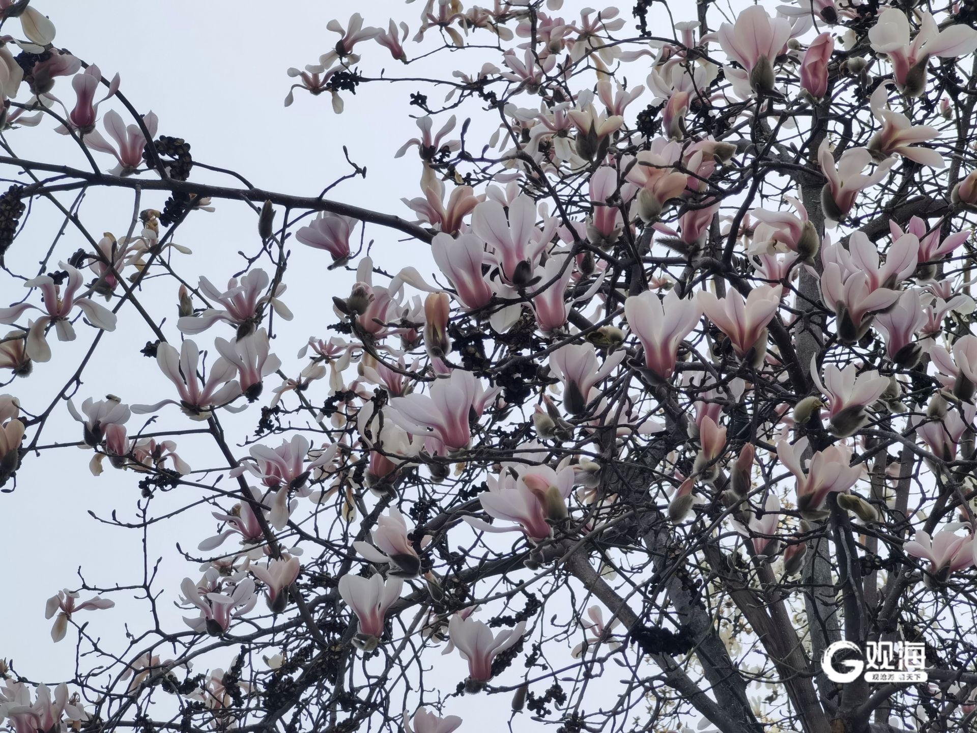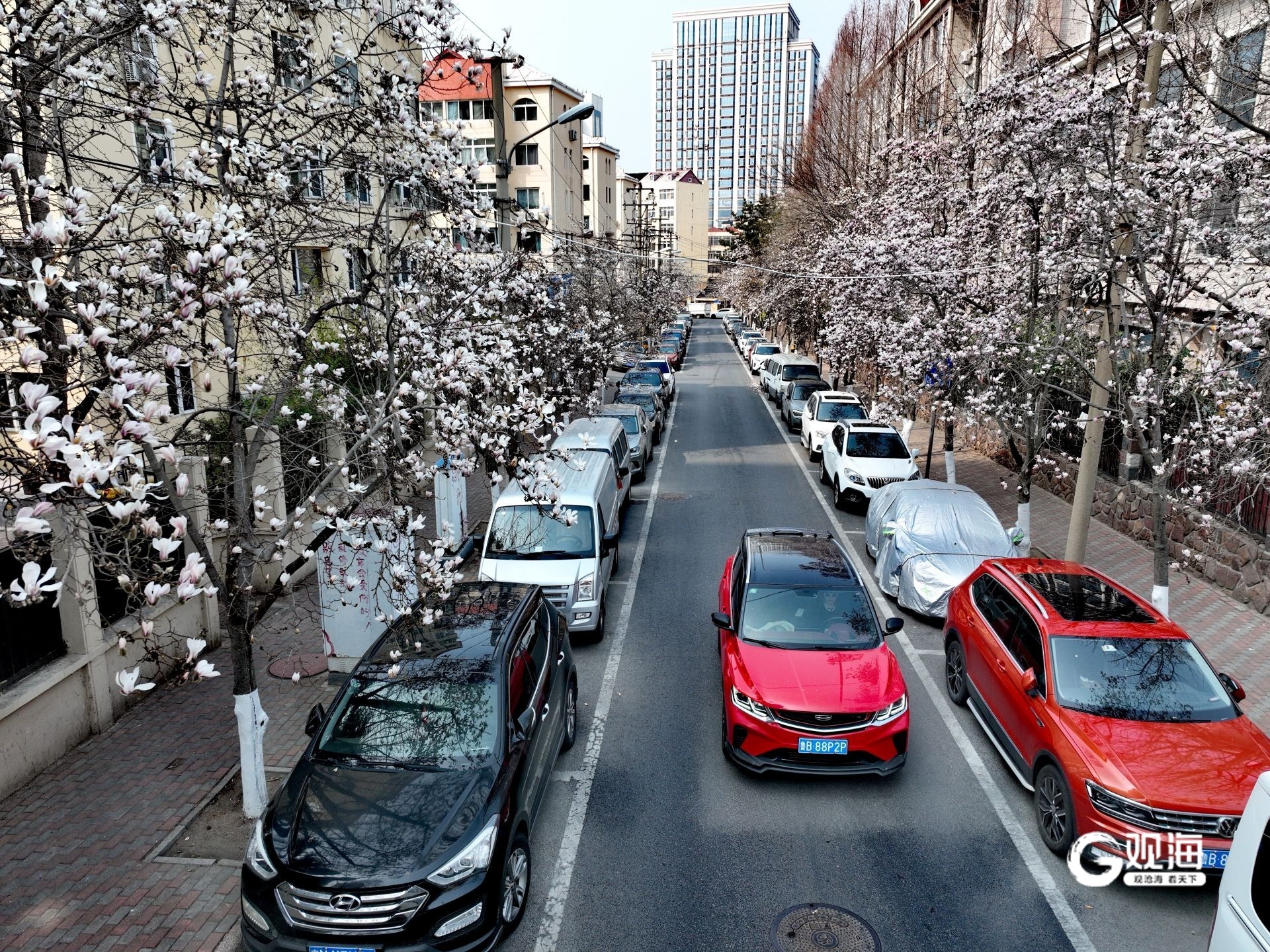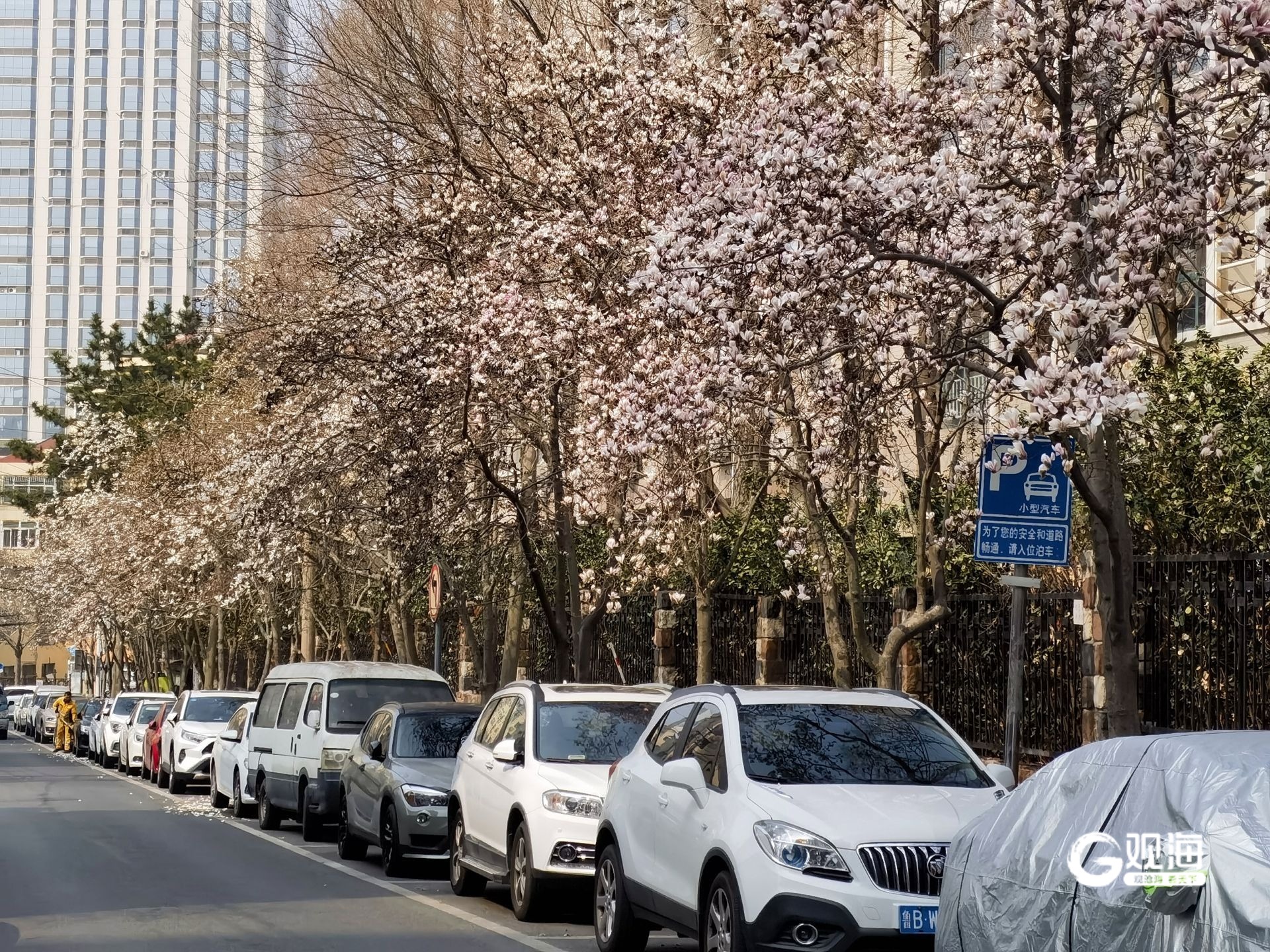 珠海一路的玉兰花正值最佳观赏期,高大的玉兰树整齐排列,枝头繁花点点,远远望去宛如一片“雪海”。微风拂过,花瓣轻轻摇曳,散发出淡淡的清香。周边市民表示,“玉兰花干净素雅,走在树下感觉心情都变好了。”