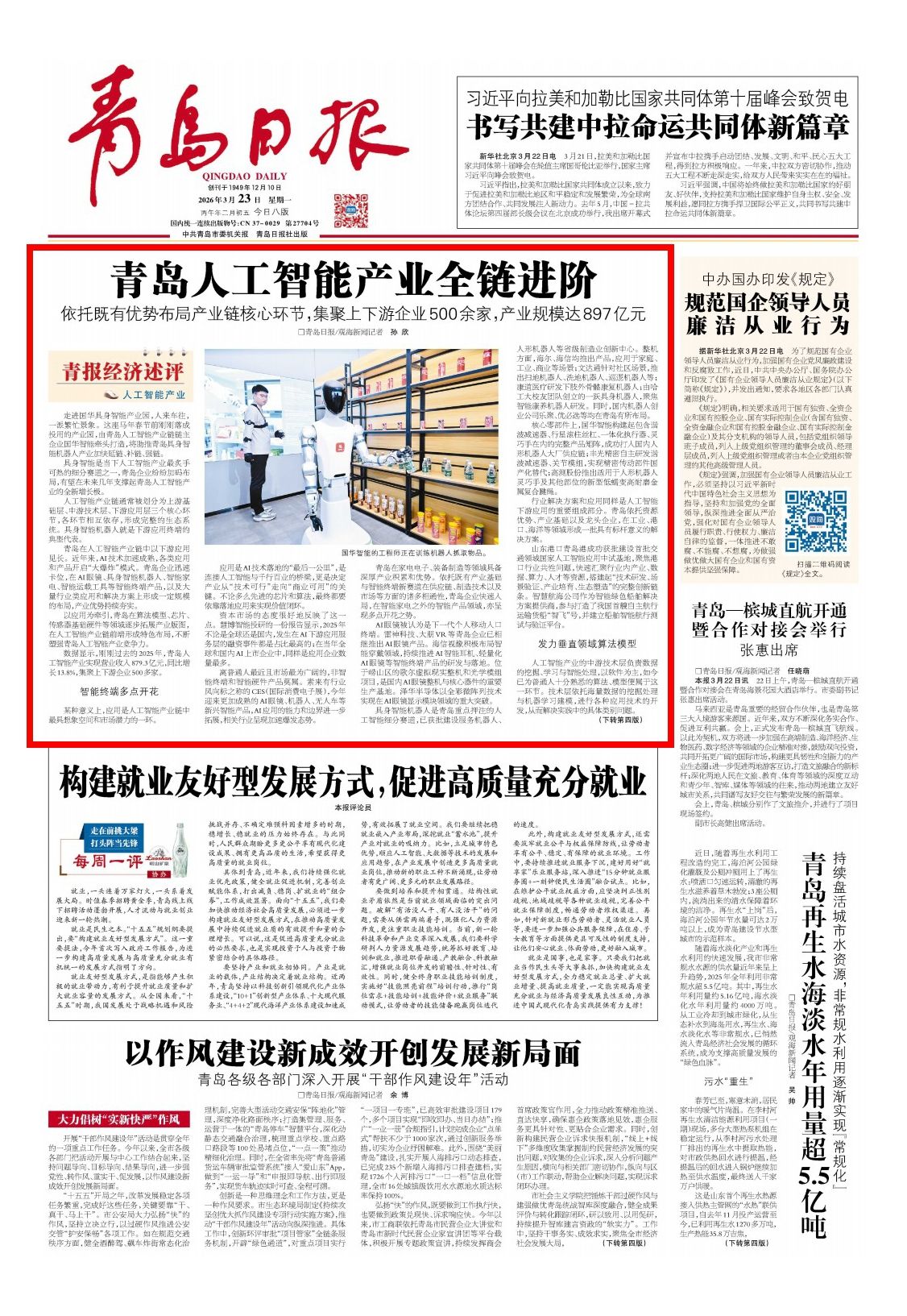 青岛日报2026年3月23日1版