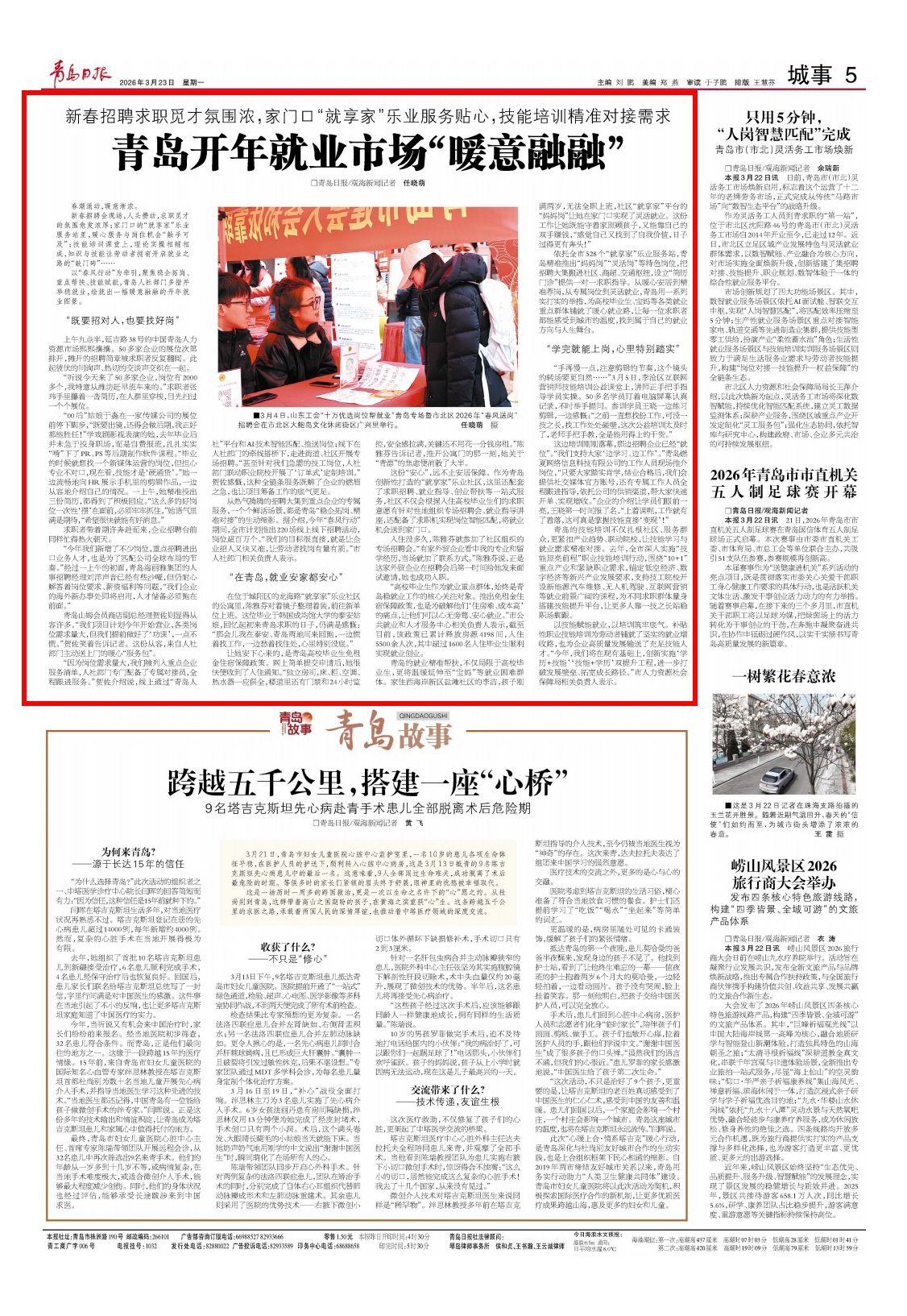 从热气腾腾的招聘大集到重点企业的专属服务,一个个鲜活场景,都是青岛“稳企拓岗、精准对接”的生动缩影。据介绍,今年“春风行动”期间,全市计划推出220场线上线下招聘活动,岗位超百万个。“我们的目标很直接,就是让企业招人又快又准,让劳动者找岗有量有质。”市人社部门相关负责人表示。