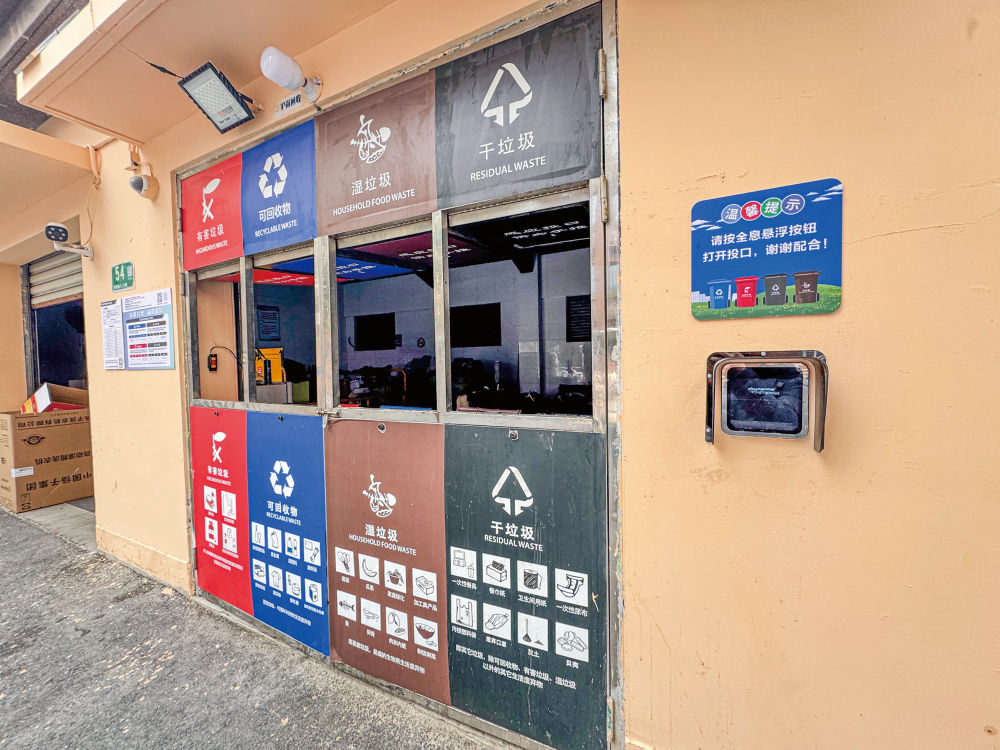 但是记者发现,用于开启“全息悬浮按钮”功能的电子屏处于断电状态,垃圾箱的四个箱门长期打开。“每次点击悬浮按钮后,系统都会发出‘请您分类投放垃圾’的提示音,此外开关箱门‘咔滋’声很大,周边楼栋居民有过投诉。所以白天我们就干脆断电,让(箱)门保持打开。”有关管理员对记者说。