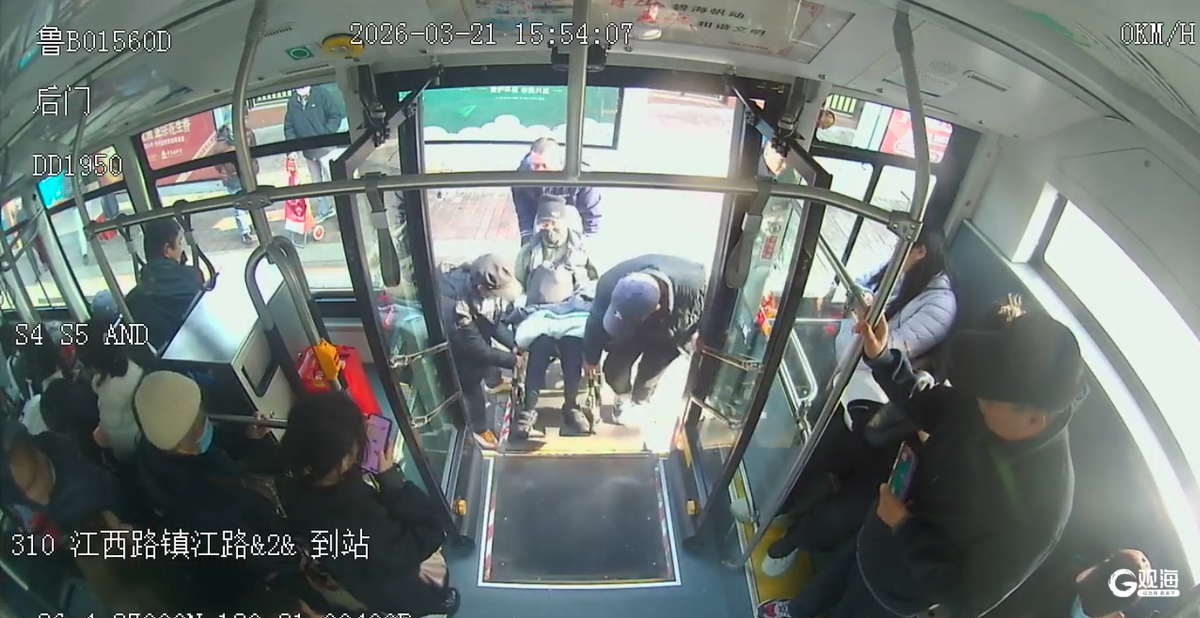 这一幕发生在3月21日。当日15点53分左右,310路驾驶员赵旗驾驶车辆到达江西路镇江路时,发现车后门处有一位乘客正推着一名乘坐轮椅的老人候车。“我在进站的时候就发现了这两位乘客,估计是要乘坐310路车,看到他们行动不方便我就想要上去搭把手。”车辆进站后,赵旗立即做好安全措施,然后迅速下车来到后门处。他一边放下后门处的辅助乘车设施,一边帮助崔先生一起将老人抬上了车。