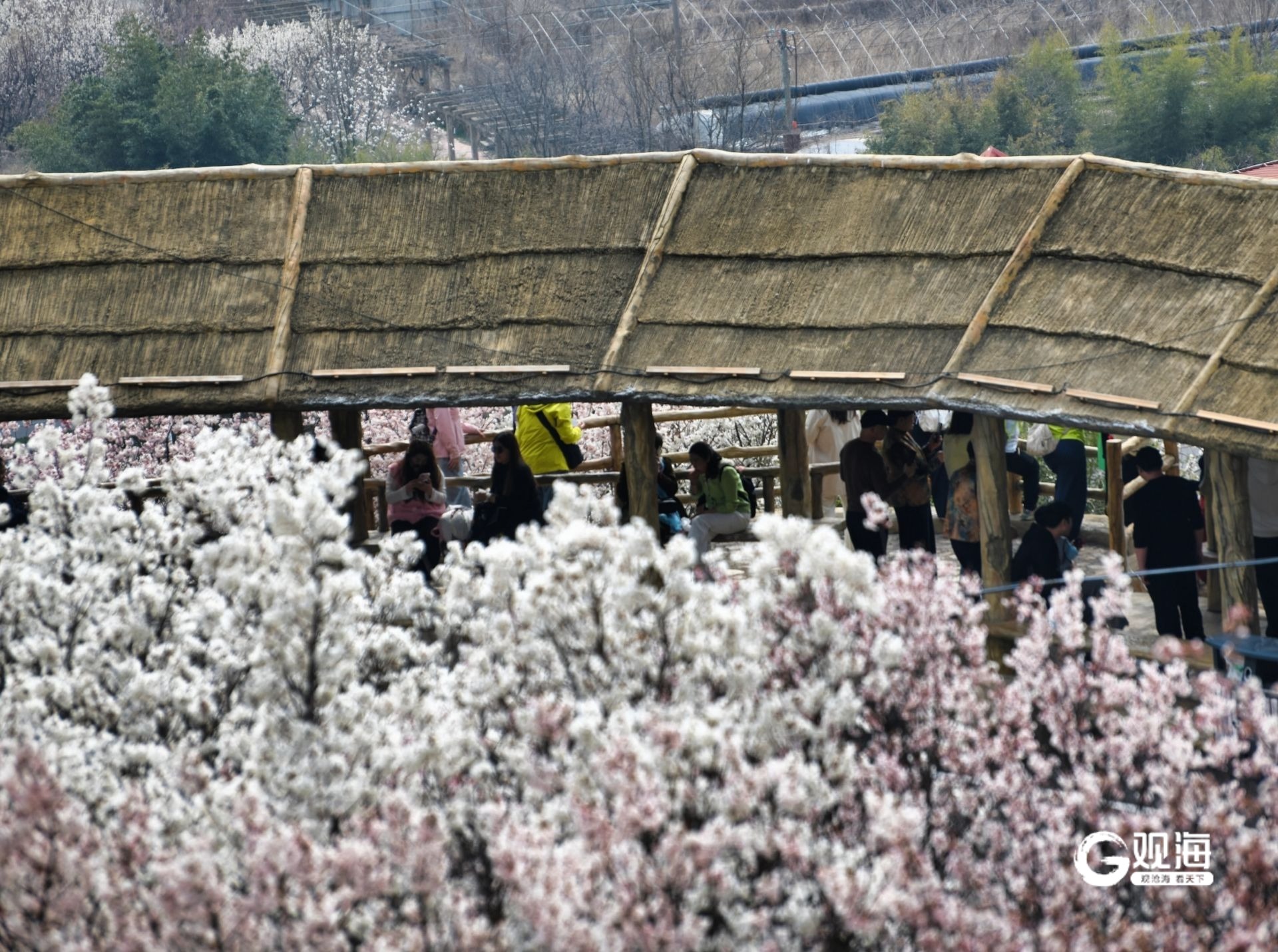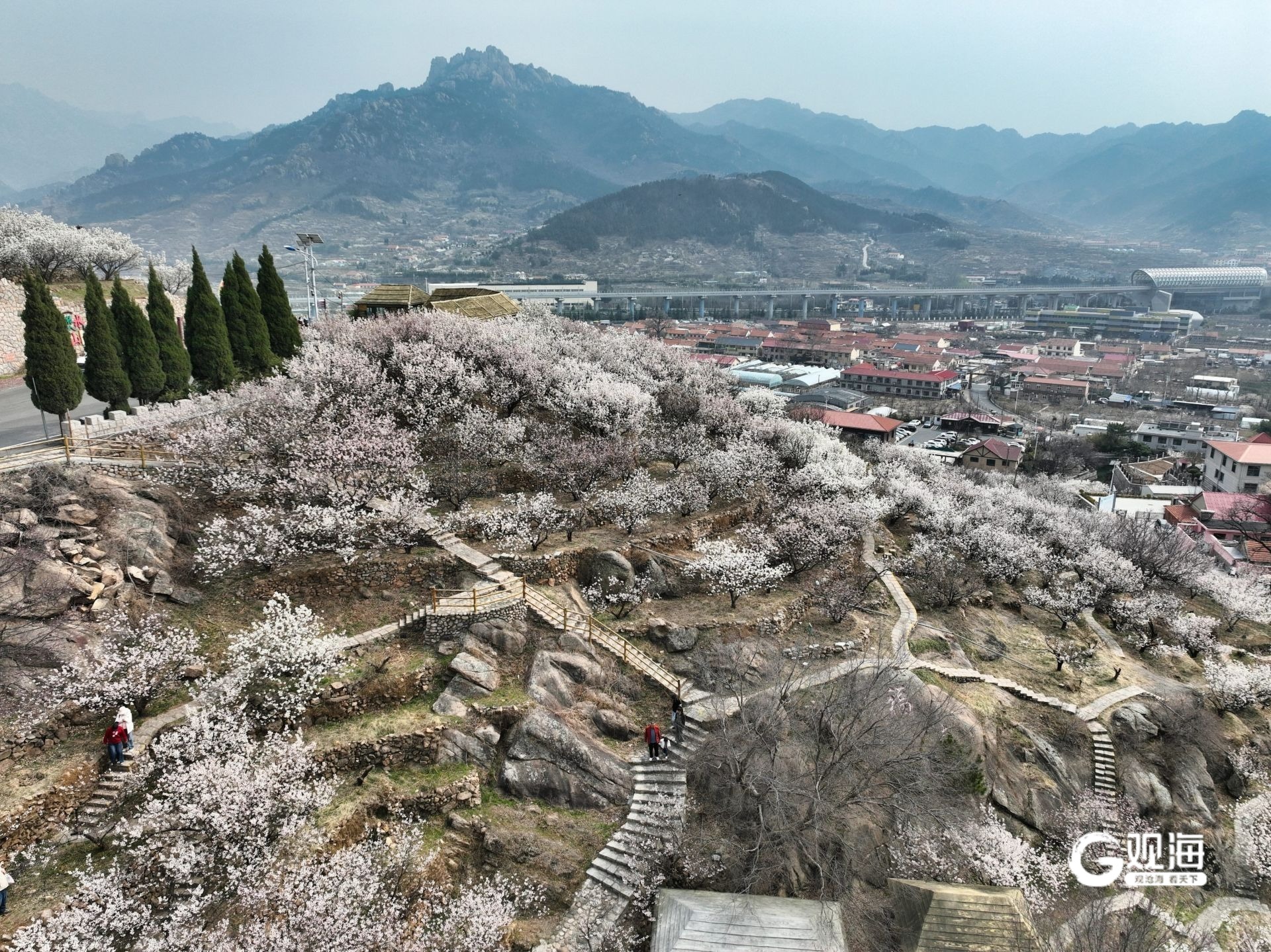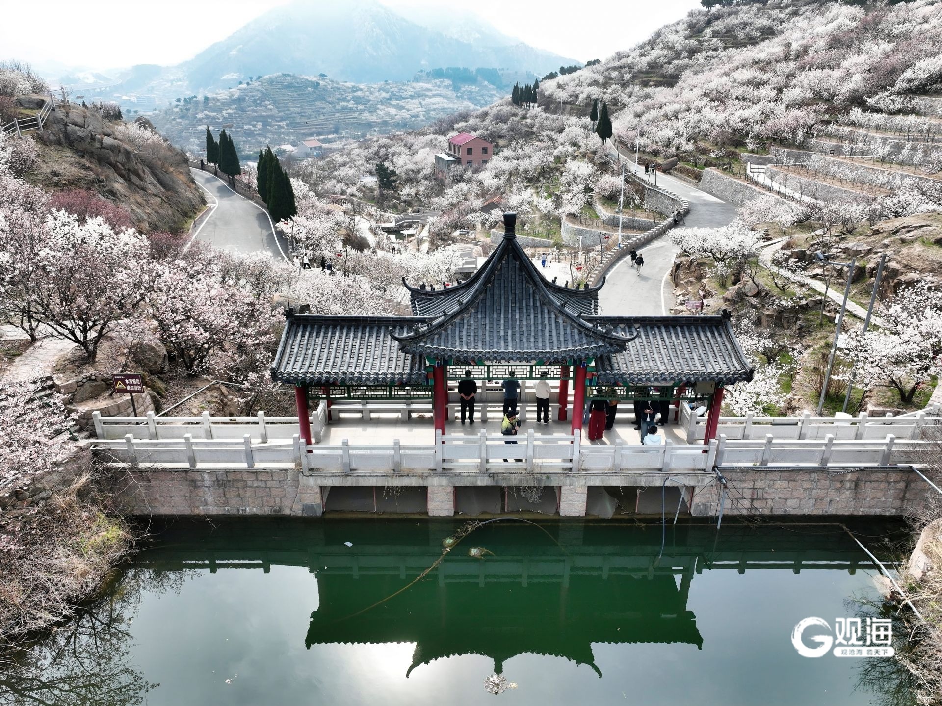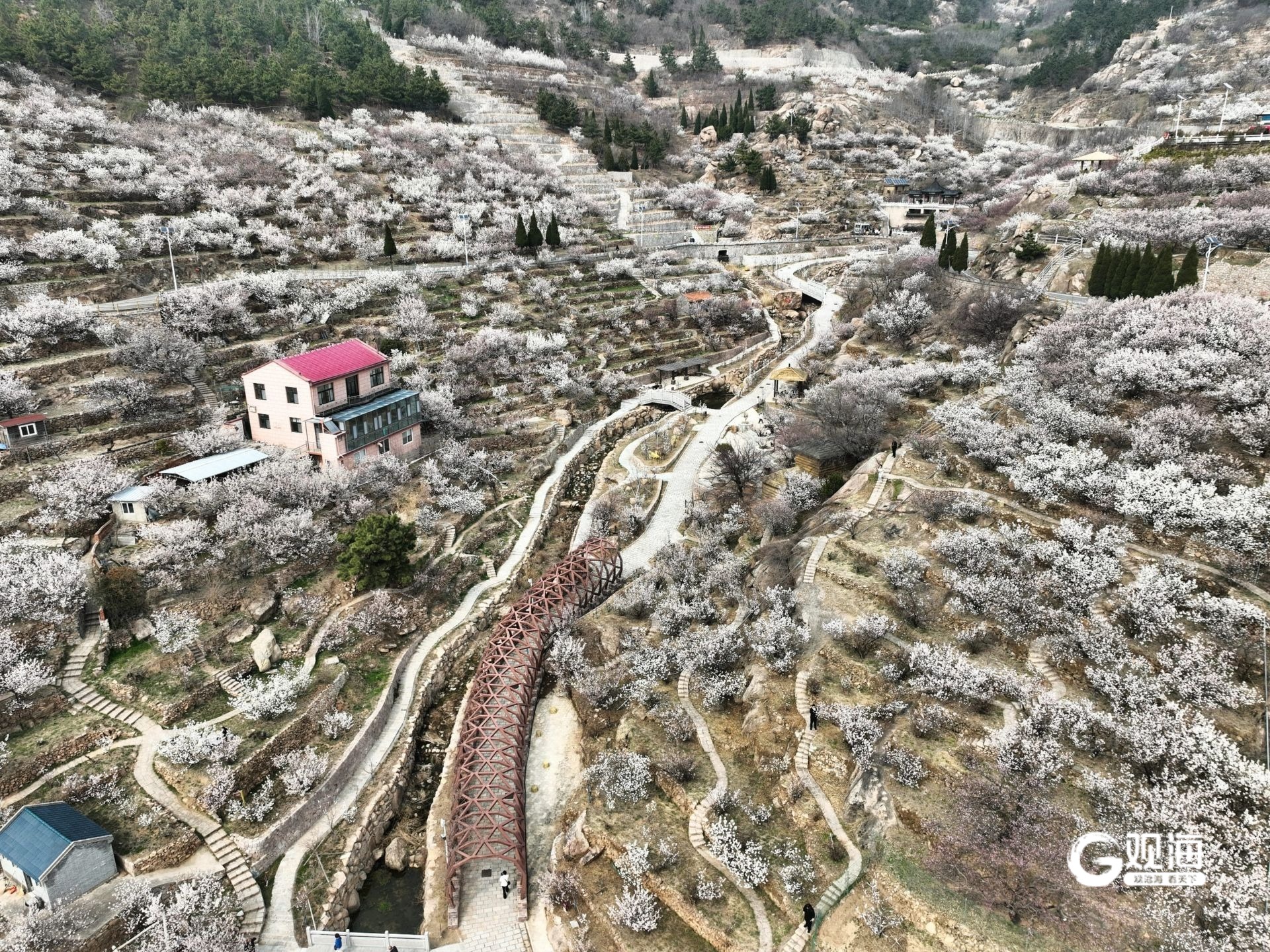 走进大崂樱桃谷,只见层层梯田被粉白色的花海覆盖,宛如一幅天然的田园画卷。游客们或漫步于蜿蜒小径,近距离欣赏樱桃花娇艳的姿态;或登高远眺,将漫山花海与远处青山、村落尽收眼底。