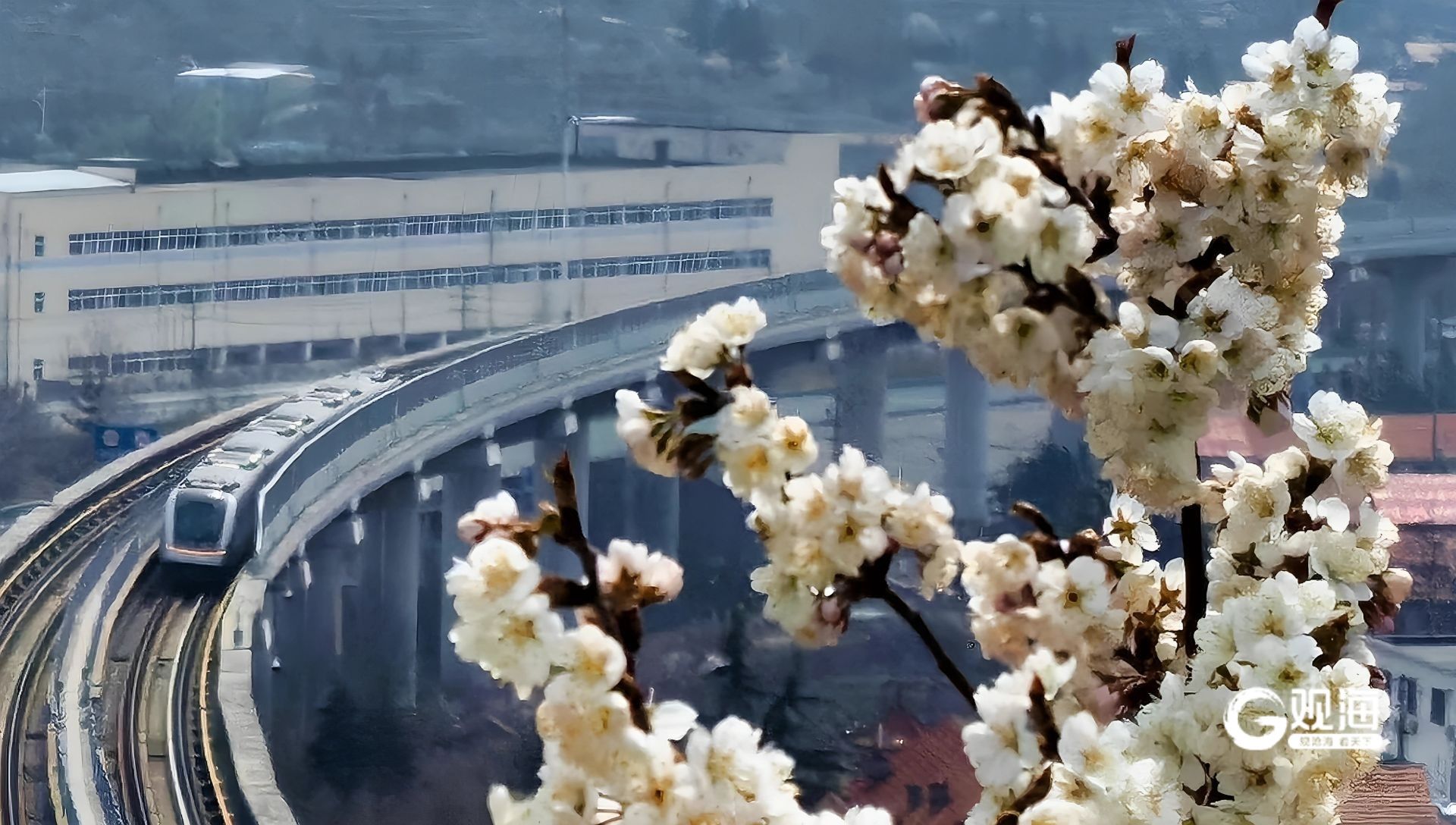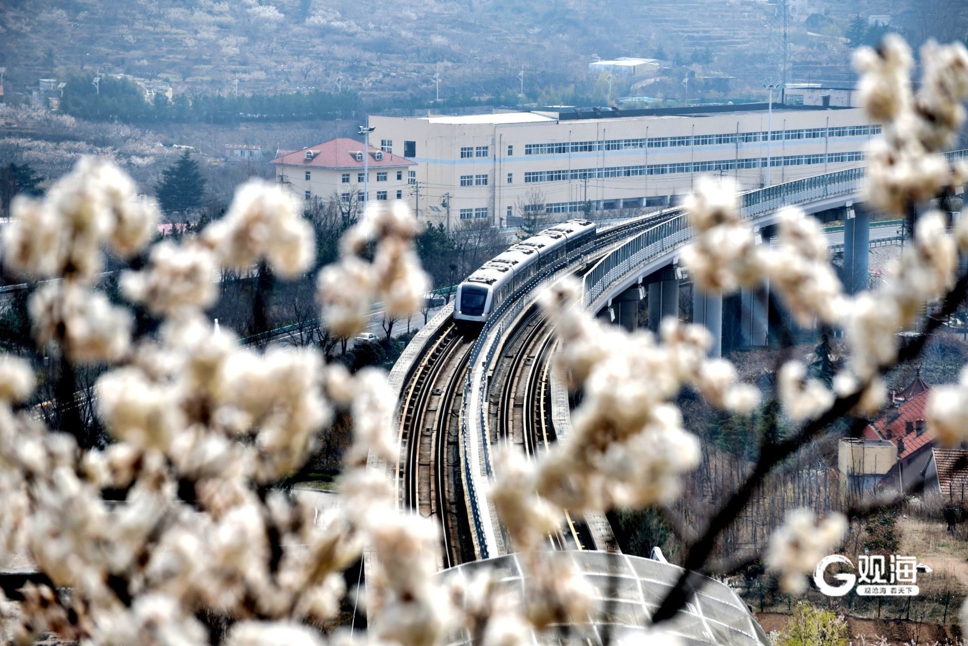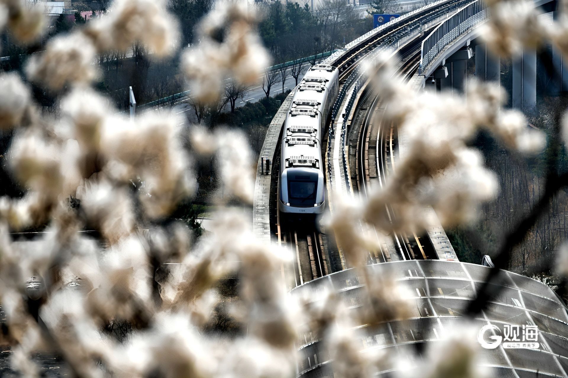 青岛日报社/观海新闻3月24日讯 随着崂山周边樱花与樱桃花竞相绽放,蓝谷快线迎来一年中最美的季节。这条被誉为“最美地铁线”的线路,从苗岭路站驶出后便跃上高架段,穿行于连绵花海之间,成为名副其实的“开往春天的列车”。