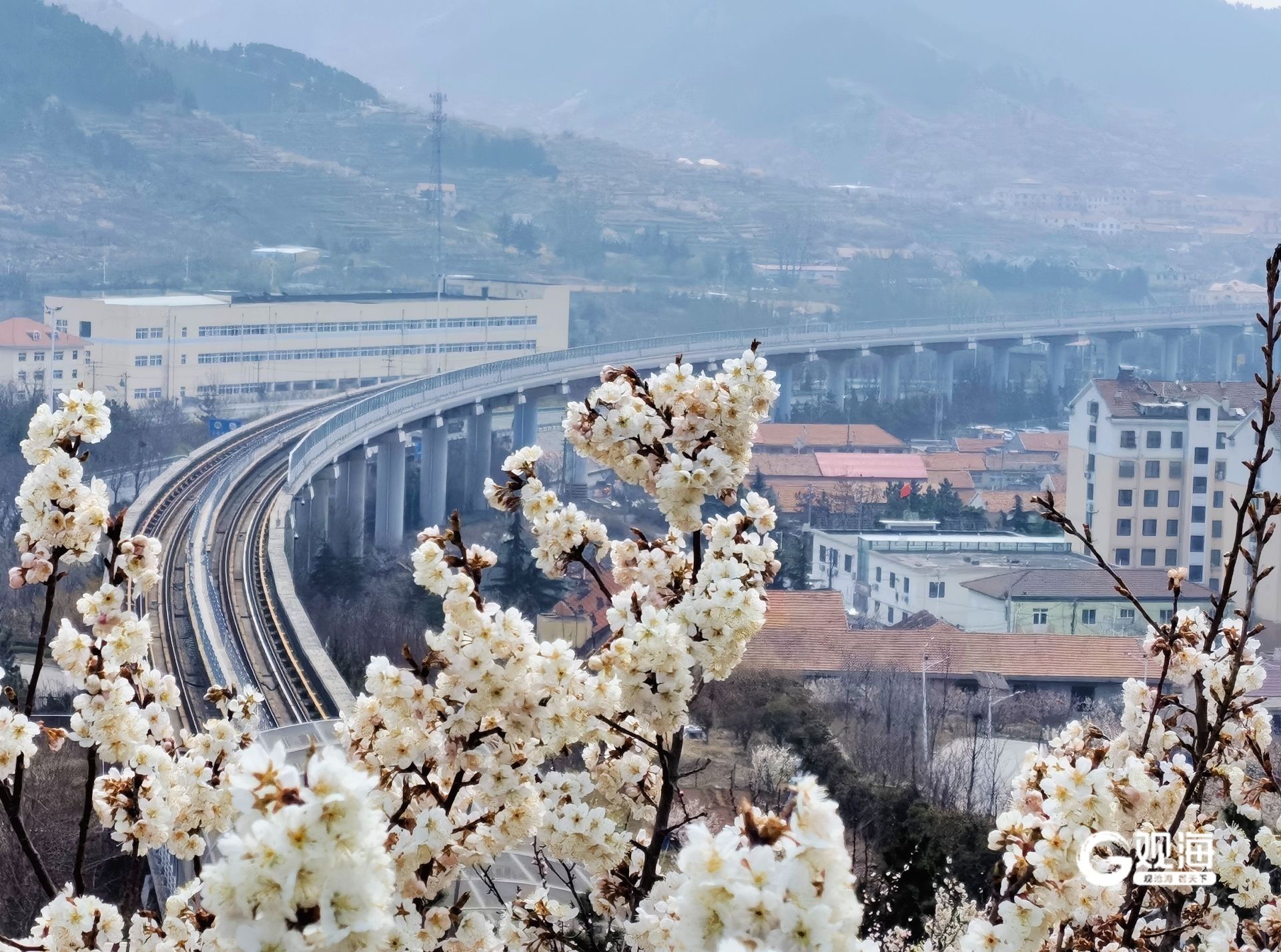 每年3月下旬至4月初,蓝谷快线高架站点北宅至庙石区段两侧山坡上,千亩樱桃花竞相盛开。列车穿行其间,窗外粉白色的花海如云似霞,层层梯田被繁花覆盖,远处青山如黛,近处村落掩映花间,不少市民游客专程搭乘蓝谷快线前来打卡。