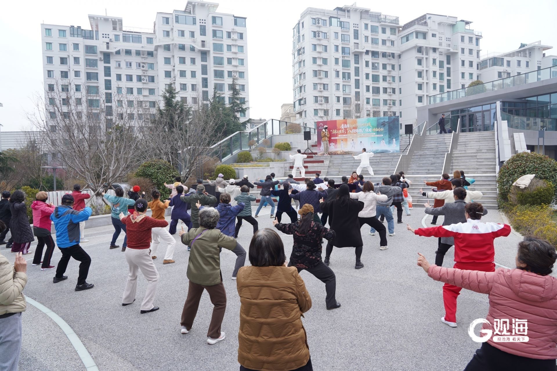 当日,海岸书院门口广场同步启动了市南区首场培训,教练现场示范指导,市民们在习习海风中舒展身心,成为海岸线上一道动人的健康风景线。