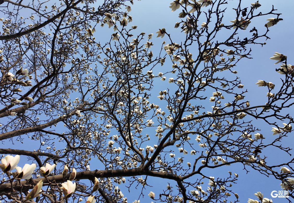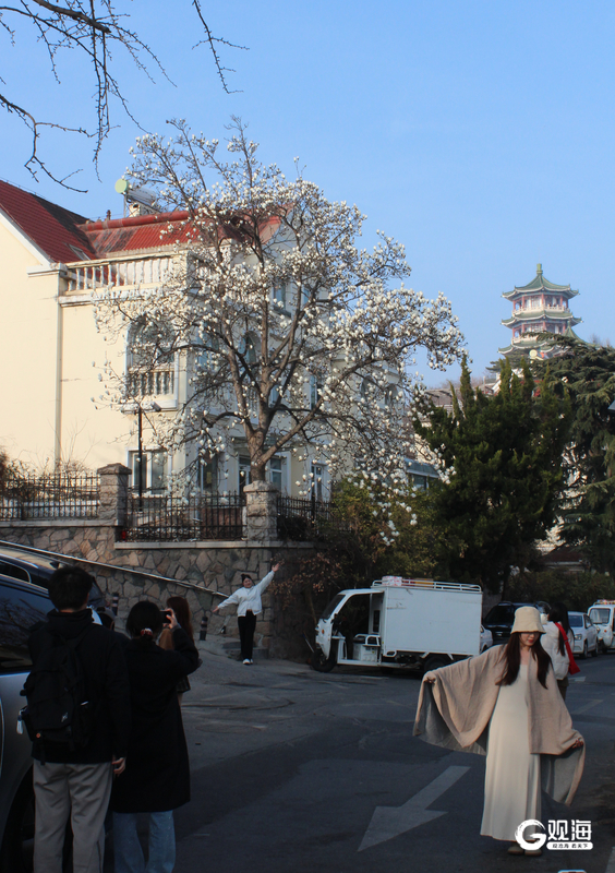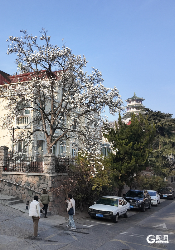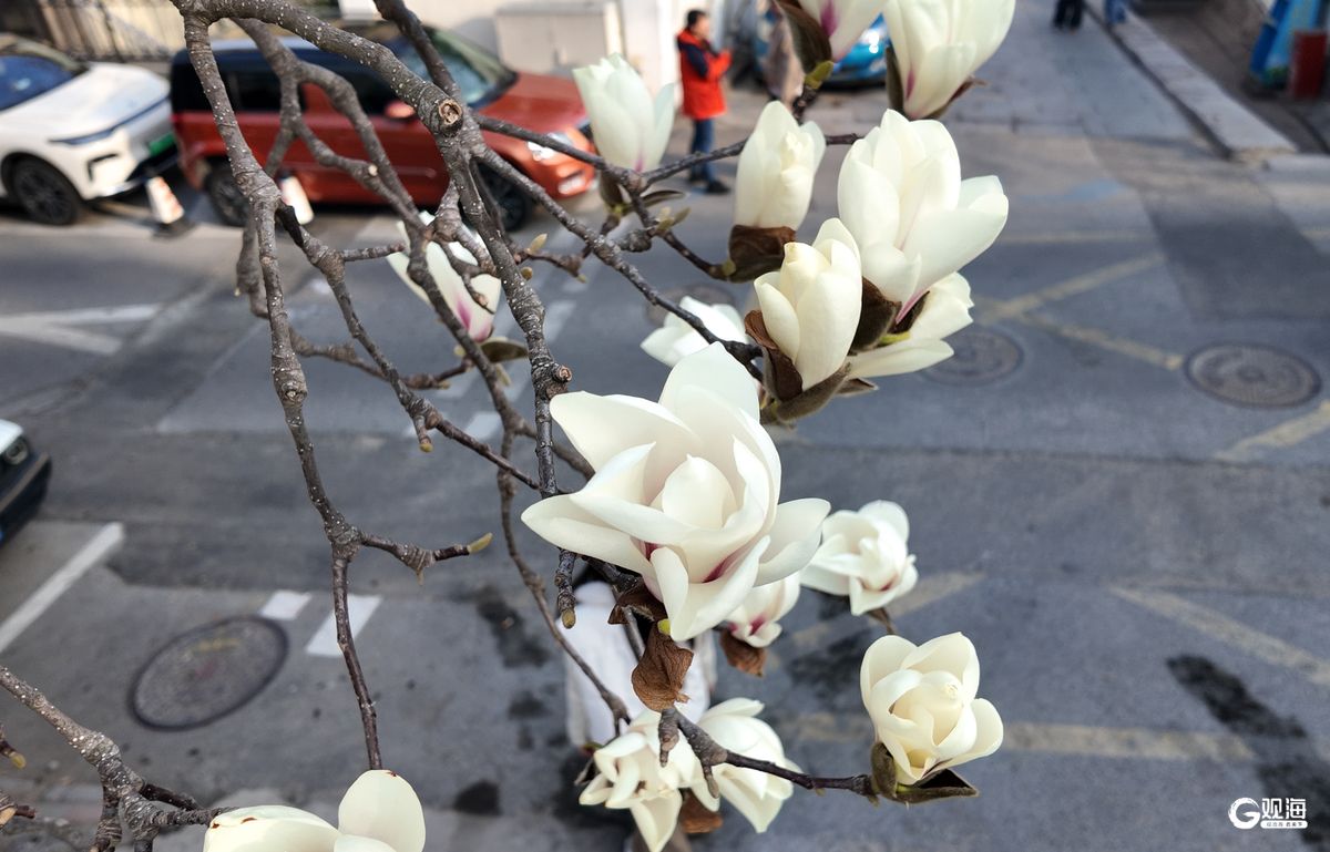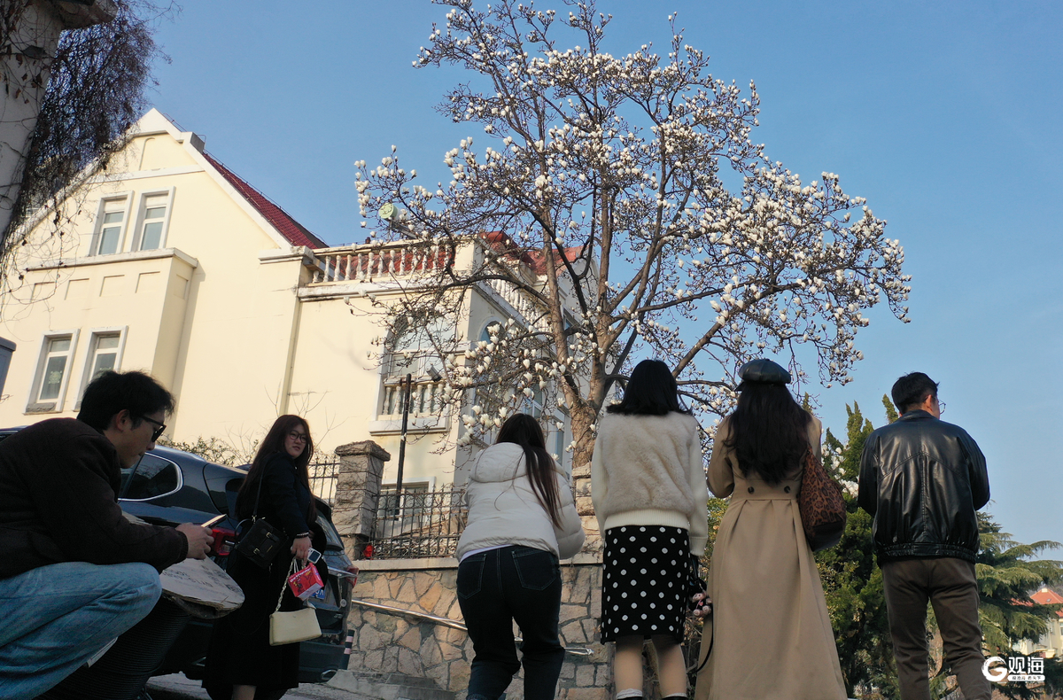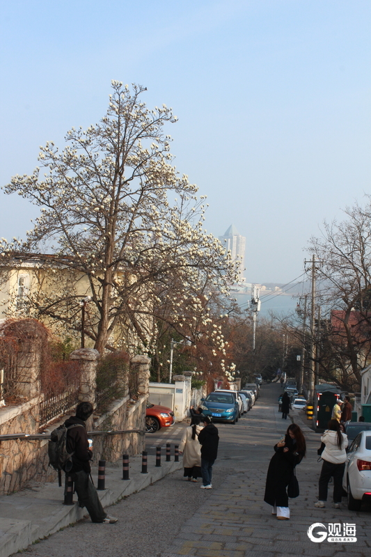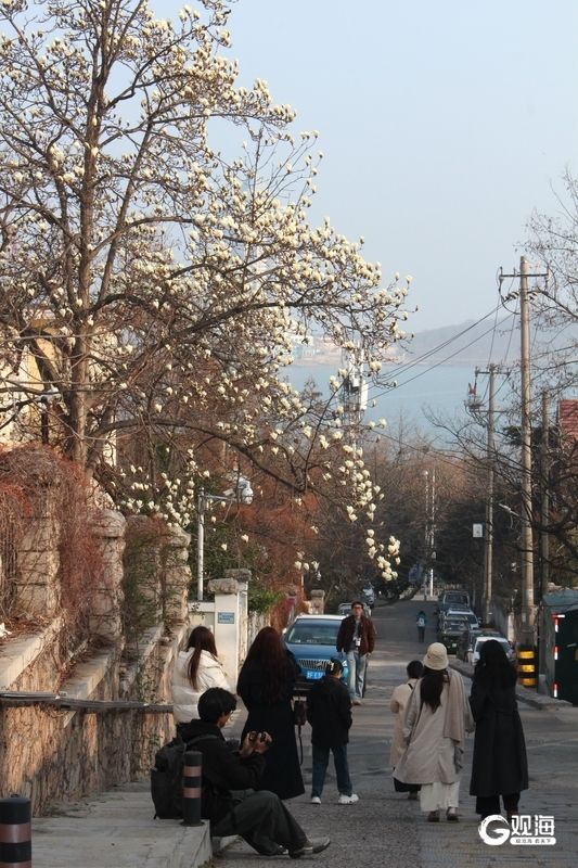 青岛日报社/观海新闻3月24日讯 眼下,市南区金口一路的“网红”玉兰迎来一年中最美的时刻。立于花下抬首,洁白花瓣映衬蓝天,如云似雪;极目远眺,碧海万顷与小鱼山的青翠山影尽收眼底,一幅山海花相映的春日画卷徐徐展开。玉兰花期短暂,这份限定美景正迎来最佳观赏期,吸引众多市民游客慕名打卡,定格浪漫瞬间。