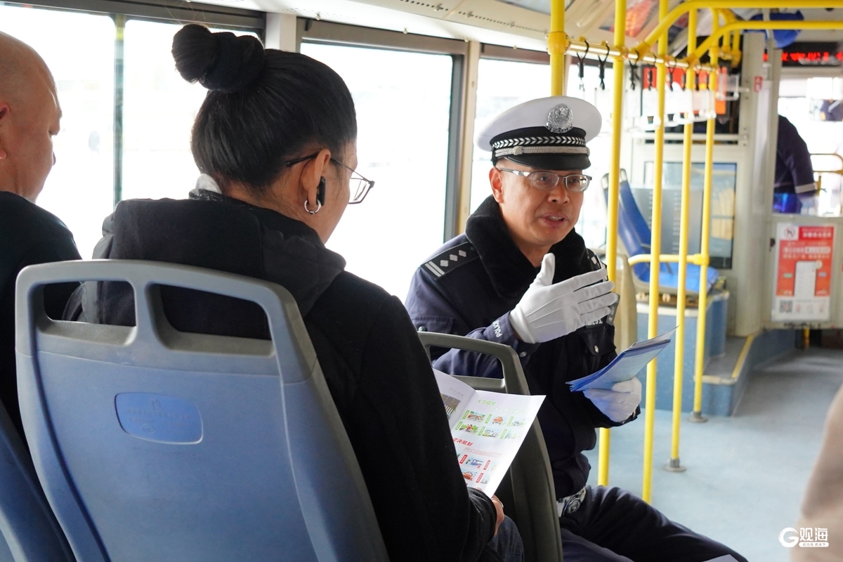 连日来,公安交管李沧区大队在文明交通主题巴士上开设“流动安全课堂”,由民警担任宣讲员,上车开展面对面、心贴心式宣传。在368路公交车上,交管民警牛宏才围绕安全乘车、文明过马路等内容进行宣讲,提醒乘客下车走斑马线、不闯红灯、不抢行,乘车系好安全带、不将头手伸出窗外,并积极倡导骑电动车佩戴安全头盔,现场发放宣传资料,强化安全提醒,让安全意识深入人心。