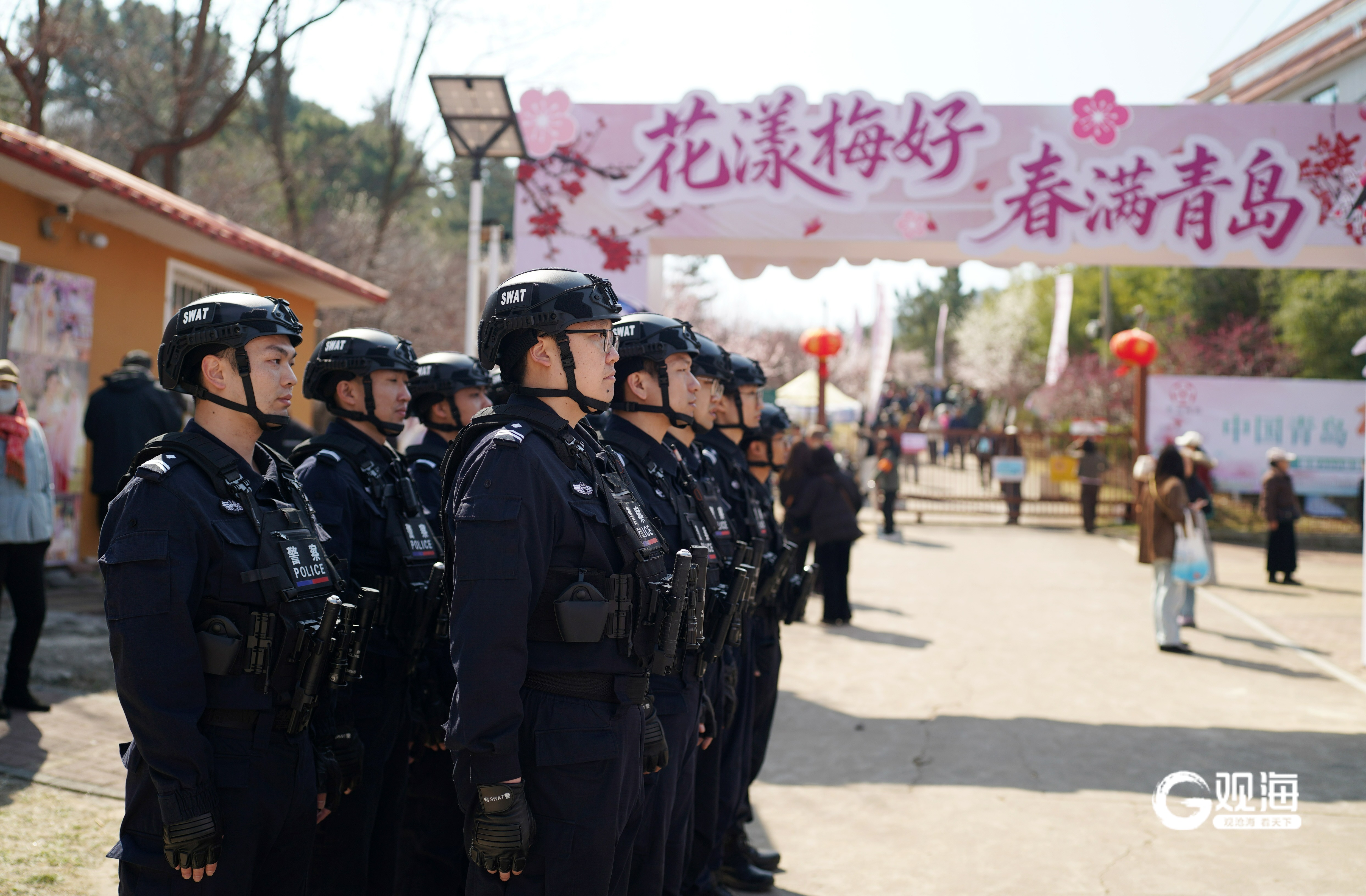 青岛日报社/观海新闻3月25日讯 春潮涌动,万物向荣。以“花漾梅好 春满青岛”为主题的第二届青岛赏花节暨第二十六届青岛梅花节日前在李沧区十梅庵公园正式启幕。园内2万余株梅花竞相绽放、凝香吐蕊,粉白相间的花枝绵延成片,将春日岛城晕染成一幅诗意盎然的天然画卷。当万千市民游客沉醉于十里梅香、尽享春日闲趣时,一抹抹挺拔的藏蓝身影穿梭于花海之间,以担当守护赏花盛景,用坚守筑牢平安防线,为这场春日之约绘就了最坚实的平安底色。