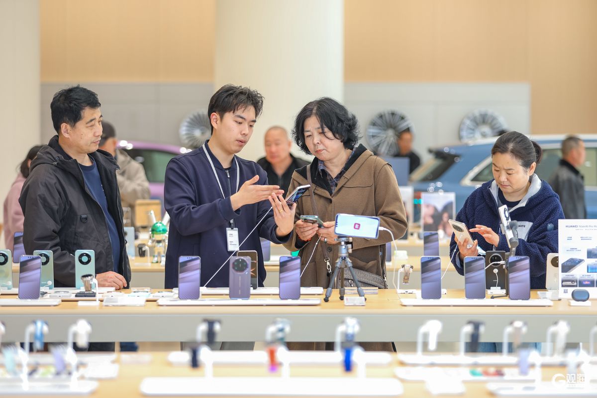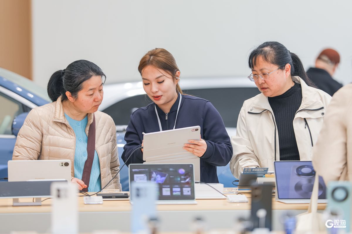 青岛日报社/观海新闻3月25日讯 随着2026年“新国补”政策落地,青岛市实施新一轮消费品以旧换新活动。3月25日,消费者在李沧区伟东·乐客城华为智能生活馆选购智能眼镜、手机、笔记本电脑、新能源汽车等产品。