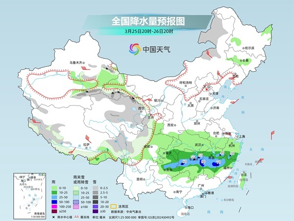 第一轮降雨:25日夜间至26日白天,南方降雨进入显著时段。
