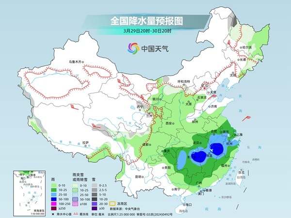 29日至30日,四川盆地东部、江汉、江淮南部、江南、华南北部及贵州东部等地部分地区有大到暴雨,江南等地局地有大暴雨,并有雷暴大风和短时强降水等强对流天气。