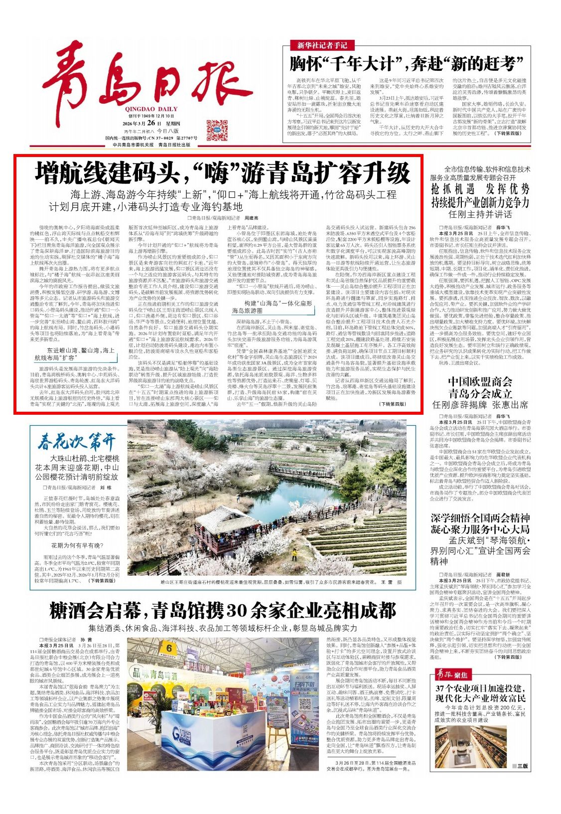 今年的市政府工作报告提出,做强文旅消费,积极发展低空游、研学游、海岛游、文博游等多元业态。记者从市旅游码头和旅游交通整治专班了解到,今年,青岛将加快推进仰口码头、小管岛码头建设,推动开通“仰口—小管岛”“仰口—太清”等“仰口+”海上航线,进一步完善“东至崂山湾、鳌山湾,西环胶州湾”的海上航线布局。同时,竹岔岛码头、小港码头等项目也将陆续落地,为“海上看青岛”带来更多新看点。